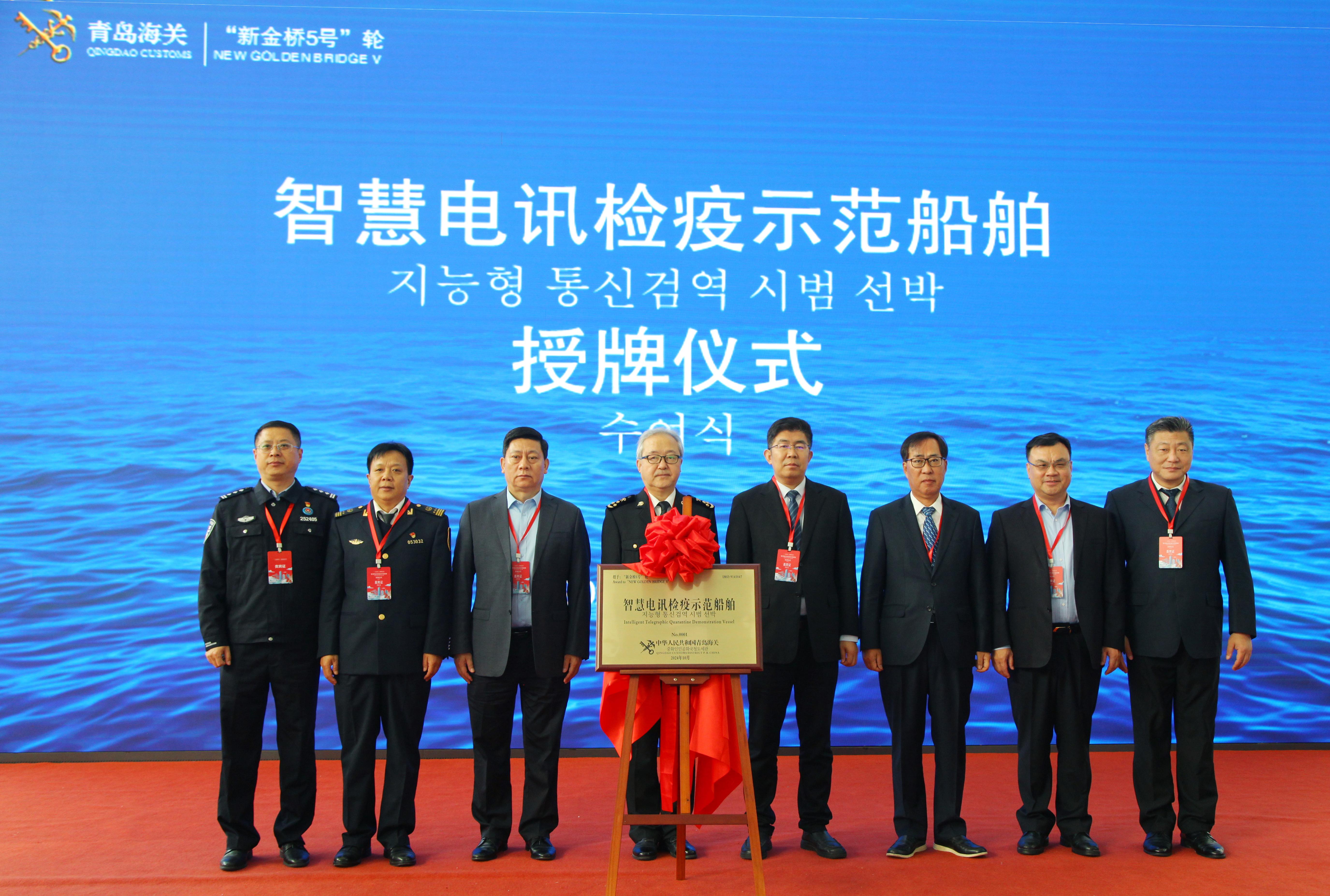 10月28日,全国首艘智慧电讯检疫示范船舶——“新金桥5号”,在青岛邮轮母港客运中心挂牌试运行。