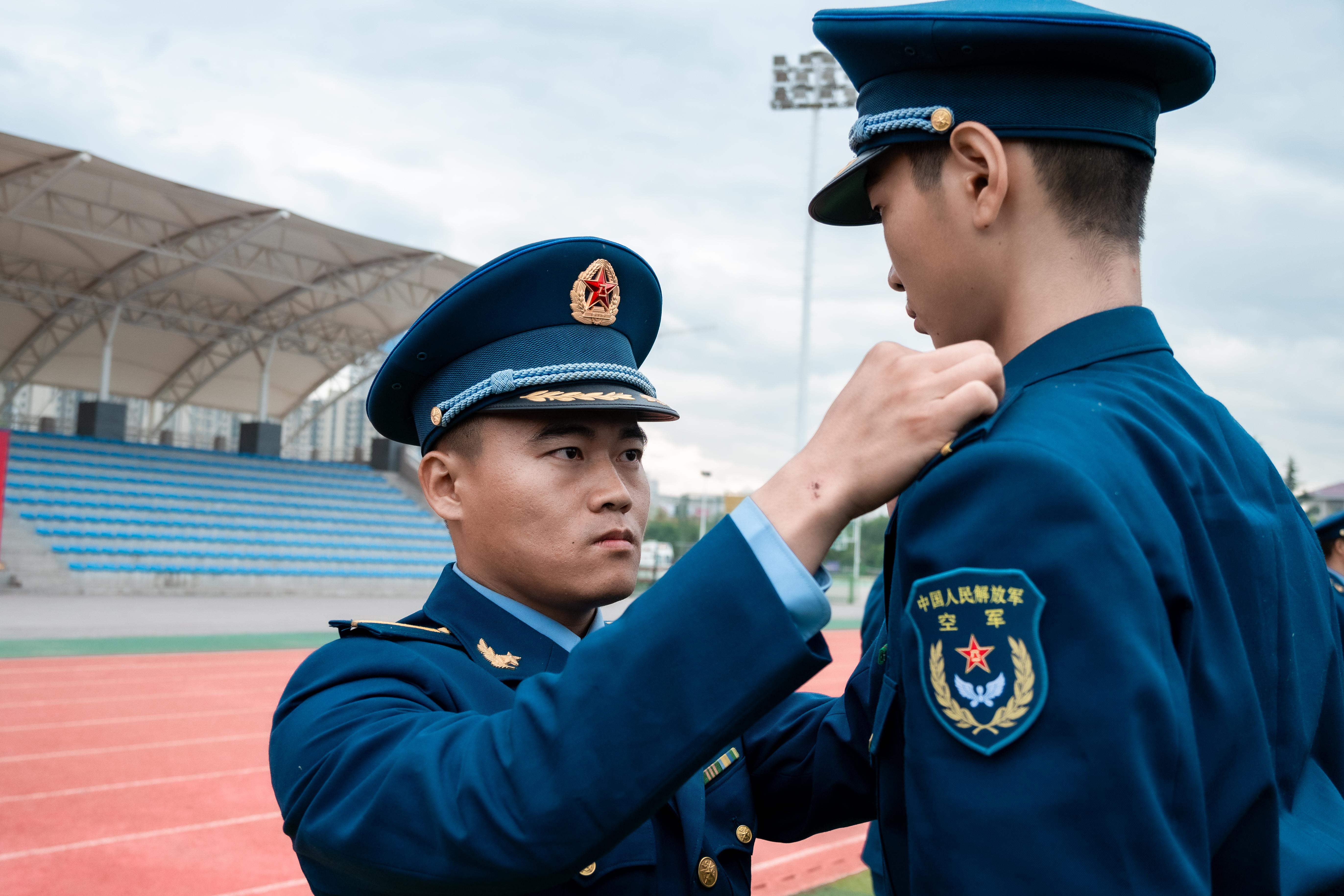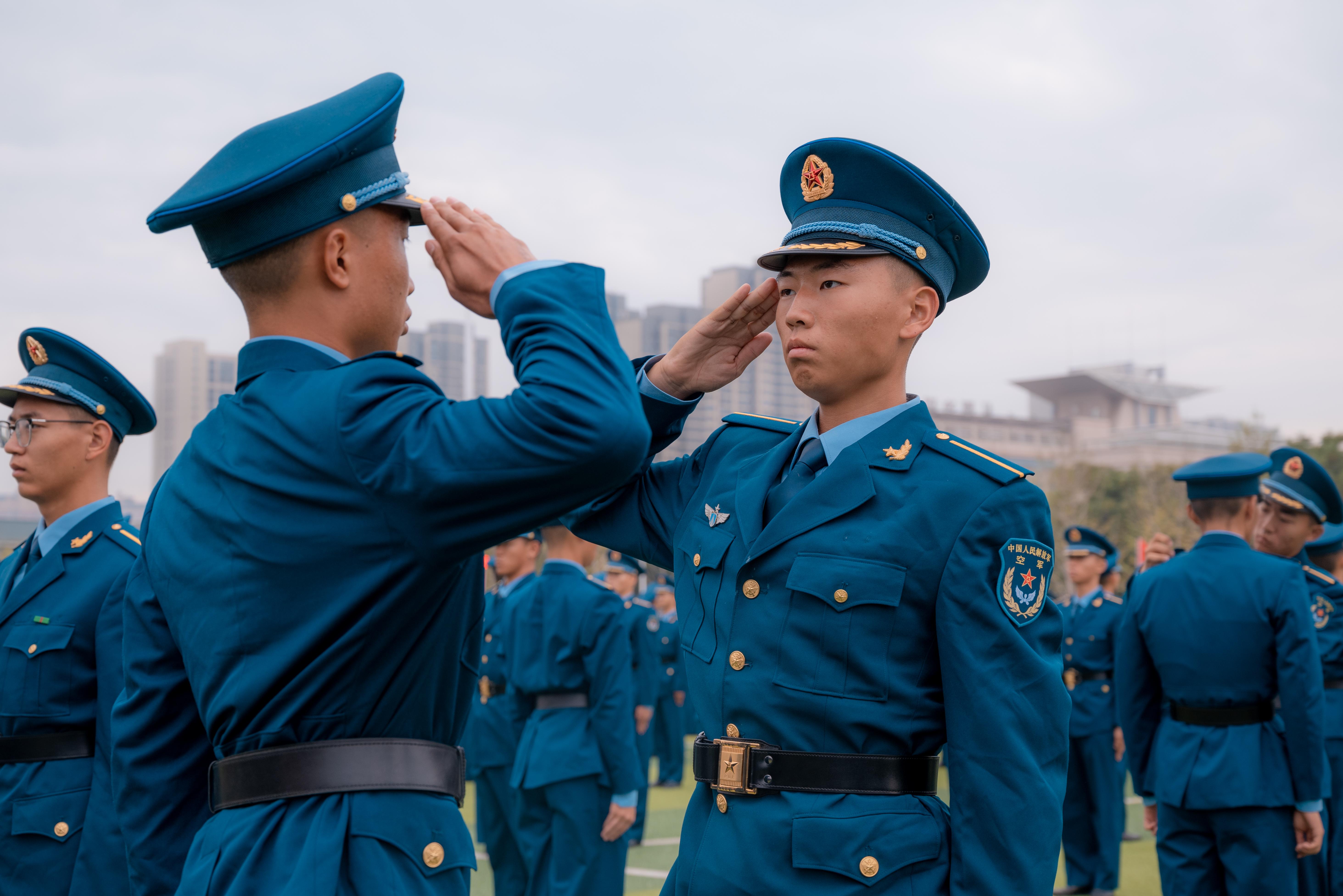 随着授衔命令的宣读,授衔仪式正式开始。全体新学员满怀激动与喜悦,互相佩戴军衔、领花等标识。随后,他们举起右手庄严宣誓,表达忠诚于党、保卫人民的铮铮誓言。