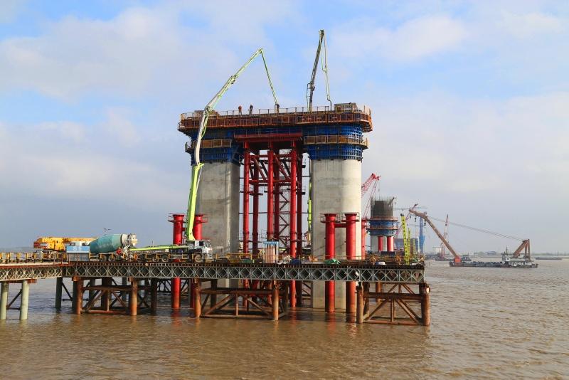 10月31日15时15分,随着最后一车混凝土浇筑,由中铁大桥局承建的沪渝蓉高铁沪宁段V标崇启公铁长江大桥主桥S5号墩盖梁成功浇筑,标志着大桥水中第6座门式桥墩建成,水中桥墩完成过半。
