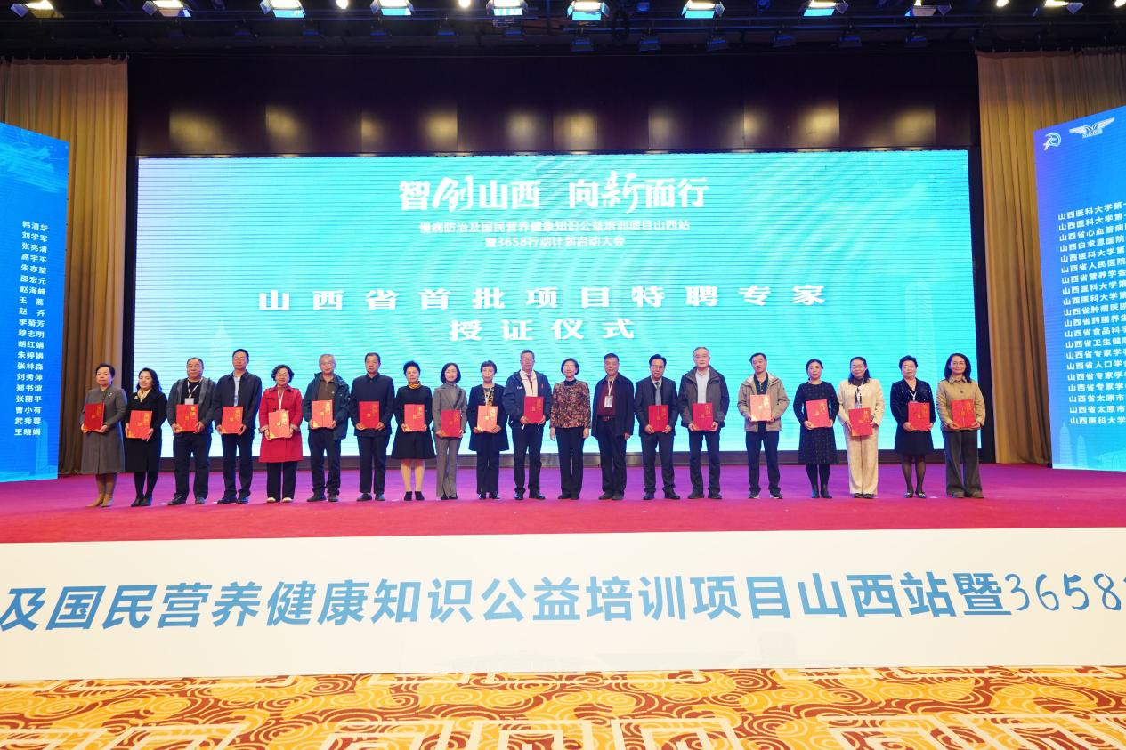 当天,20位专家受聘担任首批慢性病防治特聘专家,山西省首批50家零售药店确定为“慢病营养宣传阵地”,由慢病营养宣传阵地代表和项目志愿者代表共计100人组成的山西省首批志愿者团队成立。