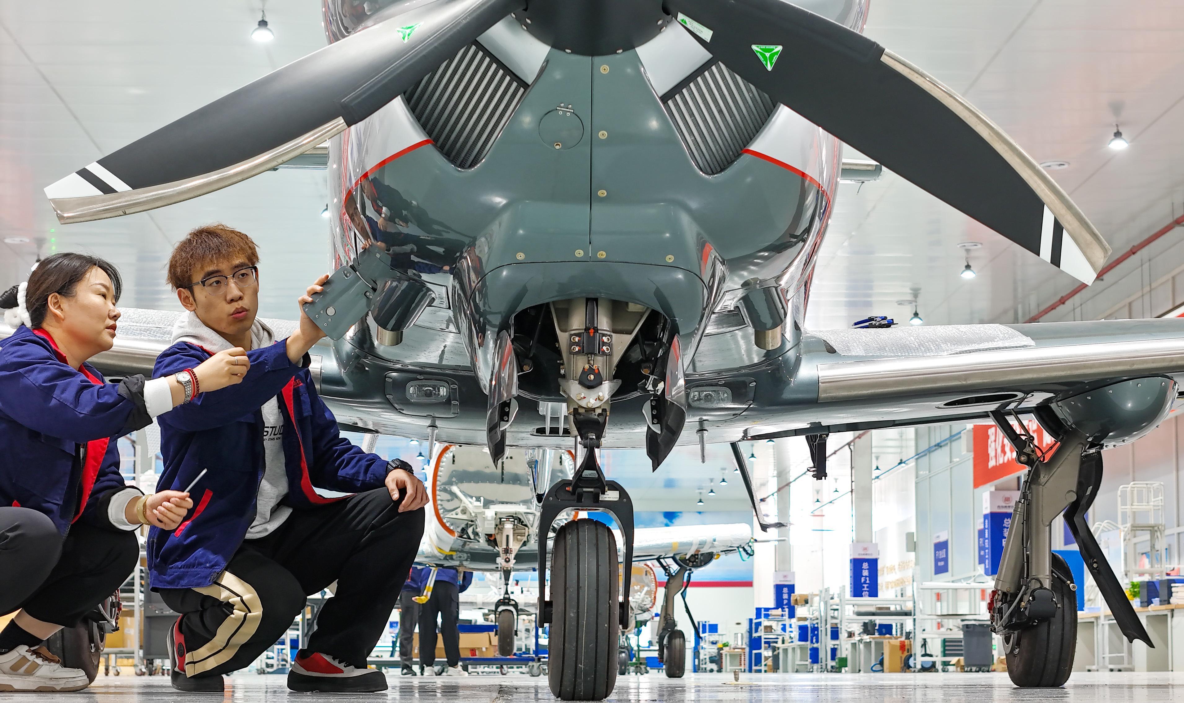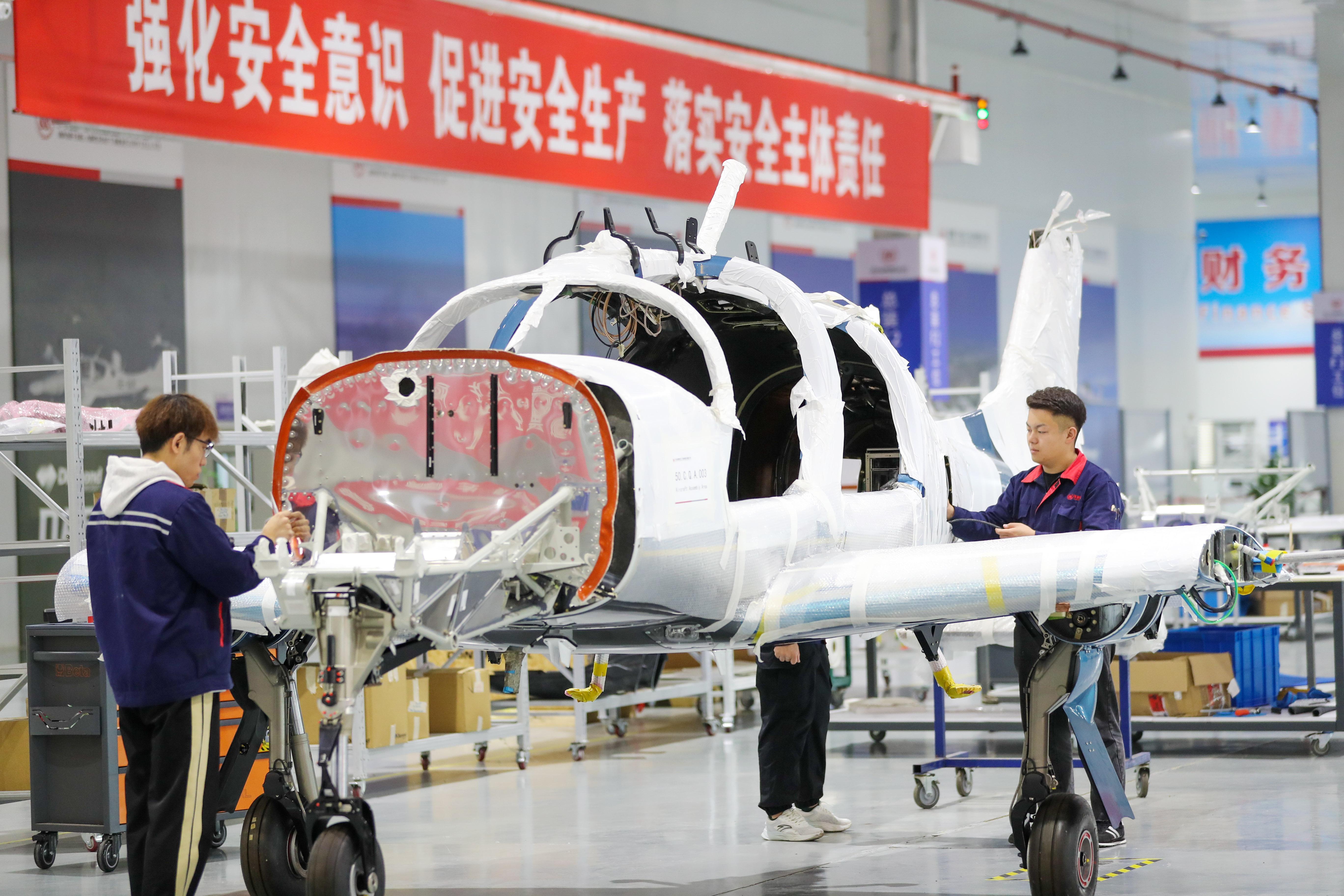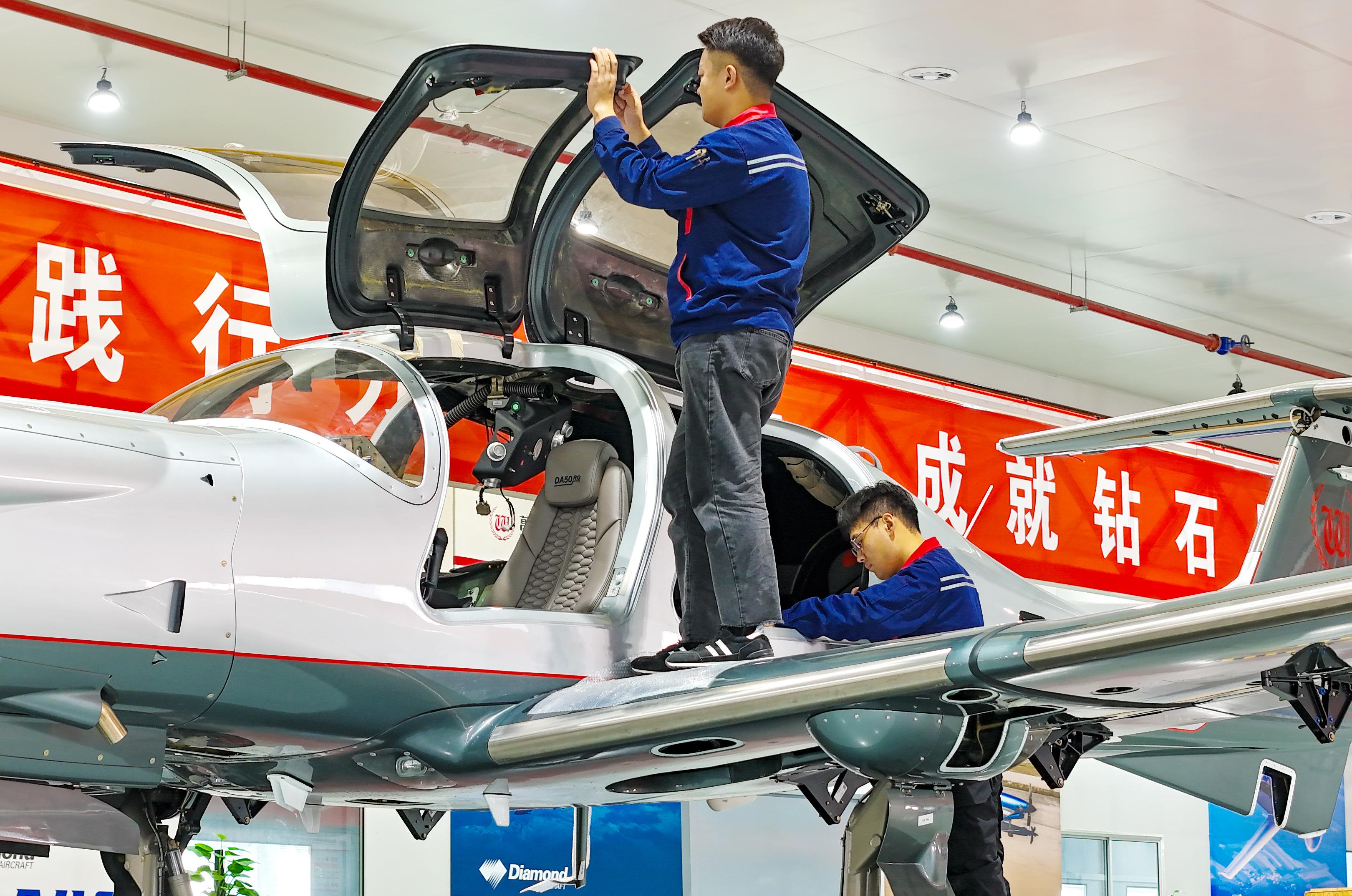 11月3日,记者在位于青岛莱西市的青岛万丰钻石飞机制造有限公司看到,整机装配线上一派繁忙。