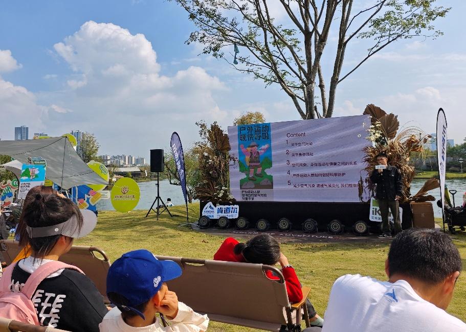 在嘉年华活动现场,亚洲清洁空气中心组织专题分享会,邀请手册主要编写者之一、来自北京大学公共卫生学院的邓建宇,与户外达人们展开面对面交流。“我自己也是一名户外运动爱好者,平时喜欢中长跑、徒步等。我发现,许多人对空气污染认知不足,忽视了空气污染在我们进行户外运动时,带来的健康影响。”邓建宇说。