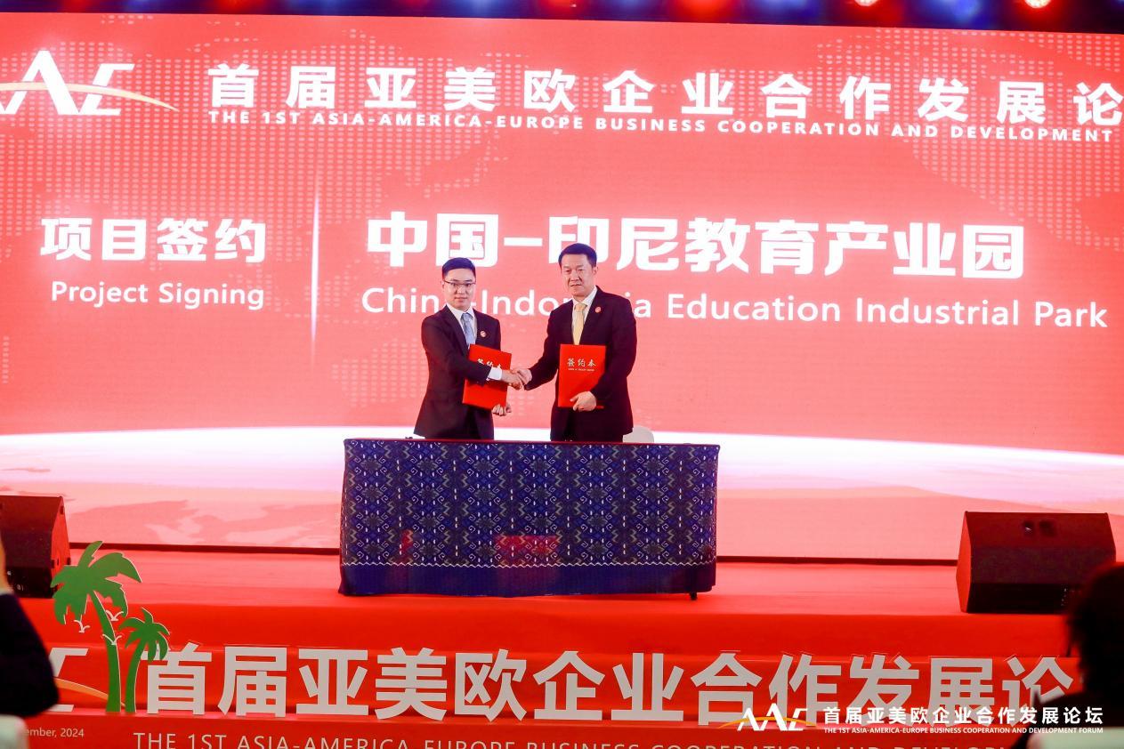 印度尼西亚国家食品药品监督管理局局长塔鲁纳-伊克拉尔,中国驻印度尼西亚公使衔参赞李洪伟,北京曜阳公益基金会发起人、首届亚美欧企业合作发展论坛组委会联席主席江丹,一带一路文化交流妇女基金会董事会联席主席、首届亚美欧企业合作发展论坛组委会联席主席古嘉利分别致辞。在签约仪式上,中国亚洲经济发展协会对外交流委员会分别与中国东方教育集团、江苏友奥智能科技股份有限公司签署中国印尼教育产业园、中国印尼生产制造产业园合作项目,中国亚洲经济发展协会生物经济分会与印尼医疗器械协会签署中国印尼生物经济产业园合作项目。