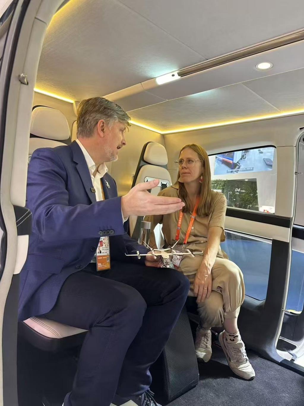 作为进博会的“新朋友”,专研于高等级商载客运电动垂直起降飞行器(eVTOL)的沃兰特航空今年携手合作伙伴ESSENCE VALUE LIMITED,首次亮相第七届进博会汽车展区未来出行专区,并把自己首款机型VE25-100 的全真1:1机舱带到了进博会现场。