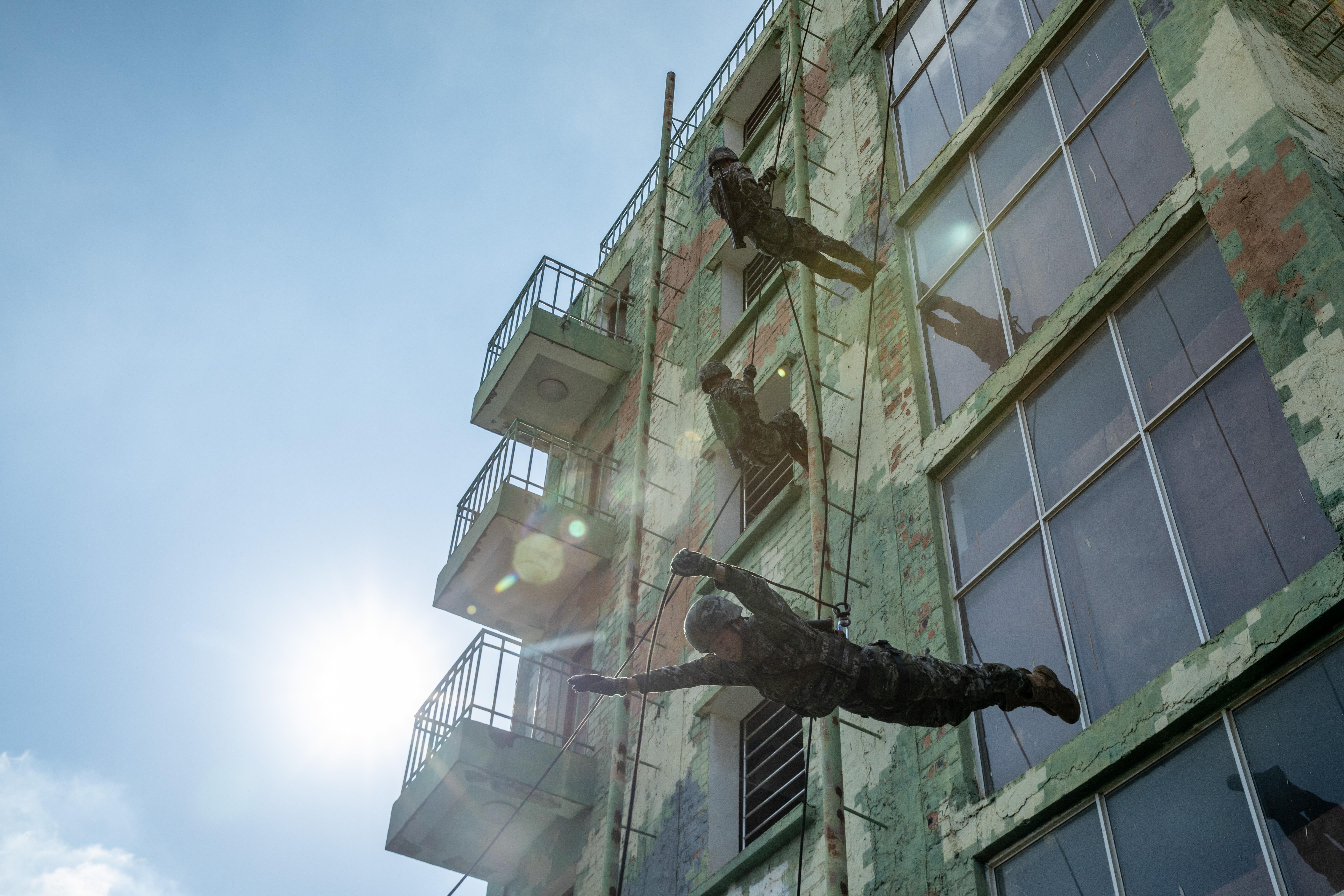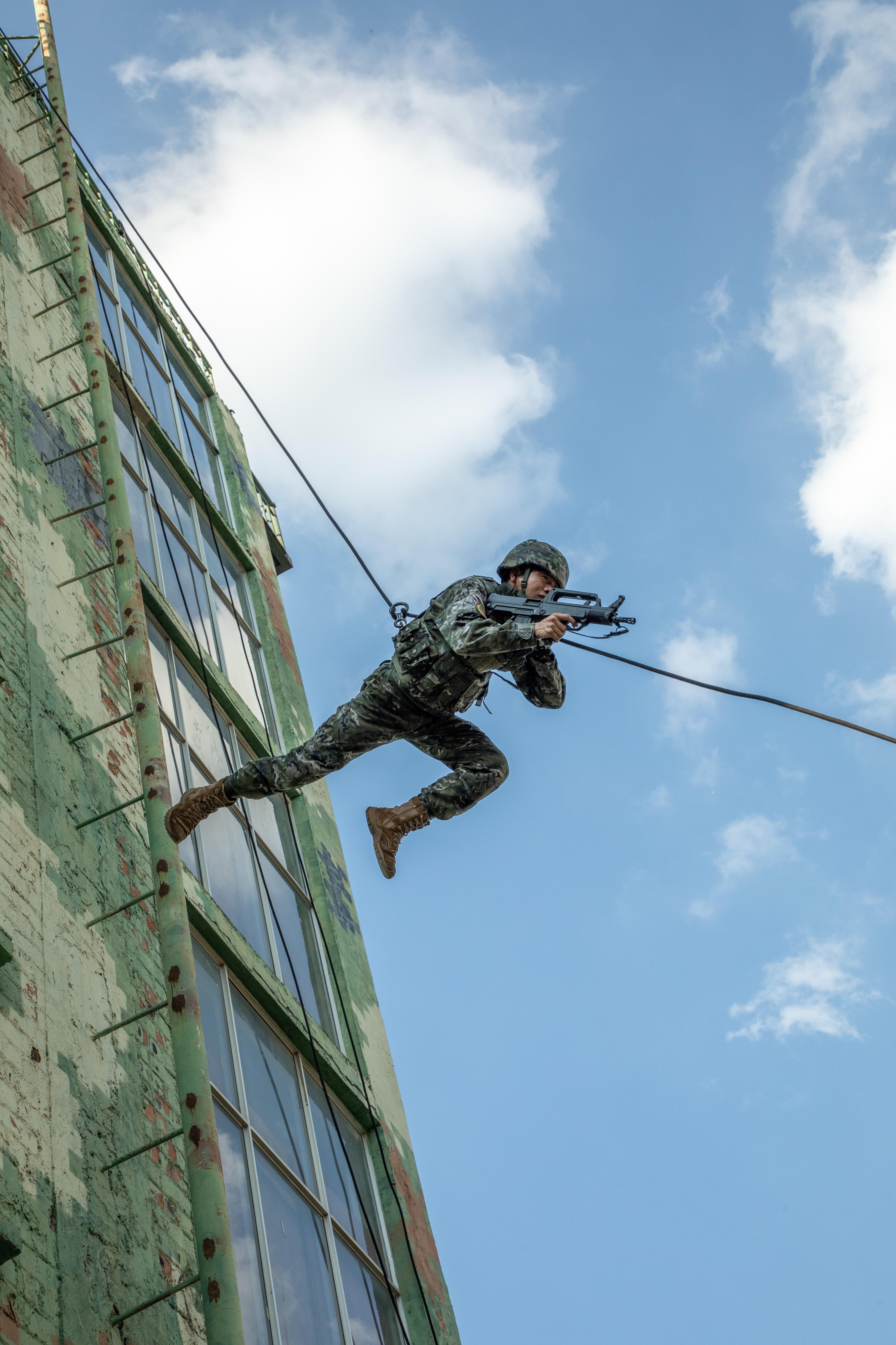 近日,武警广西总队南宁支队组织特战队员开展楼房攀登、高空索降等课目训练,锤炼特战队员过硬的心理素质,进一步提高官兵协同战斗素养和制胜能力,为下一步遂行多样化反恐处突任务奠定坚实基础。