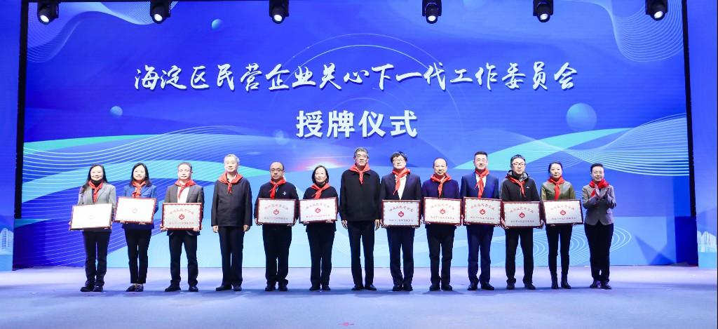 活动现场,中国关工委常务副主任鲁勇,北京市关工委主任梁伟,海淀区关工委主任刘恪为十家民营企业关工委授牌。