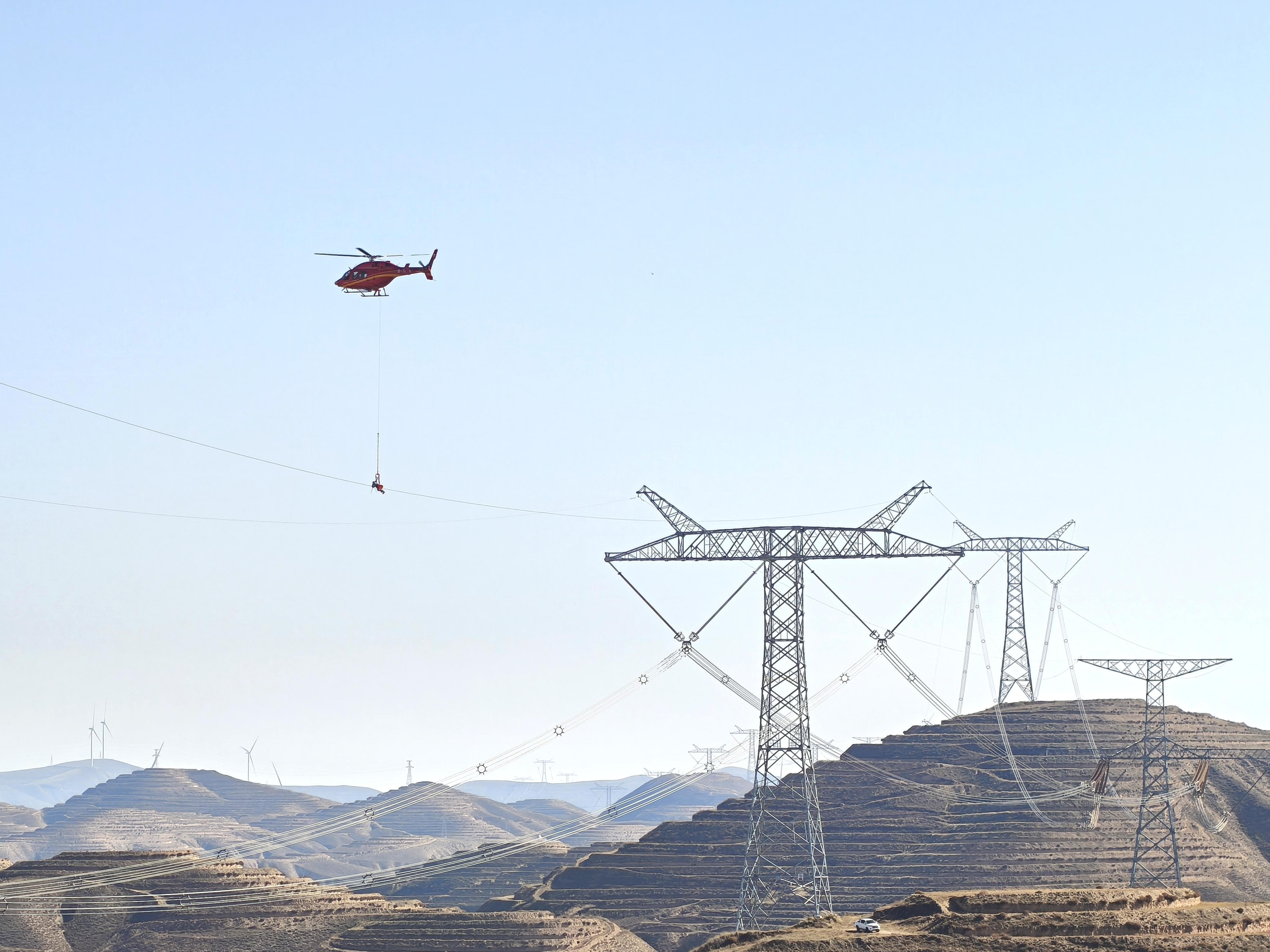11月8日,国网宁夏电力超高压公司利用直升机绞车吊椅法顺利完成±1100千伏吉泉线地线接头补强工作,系全国首次使用该工法开展补强作业,有力保障了“西电东送”大动脉安全稳定供电。