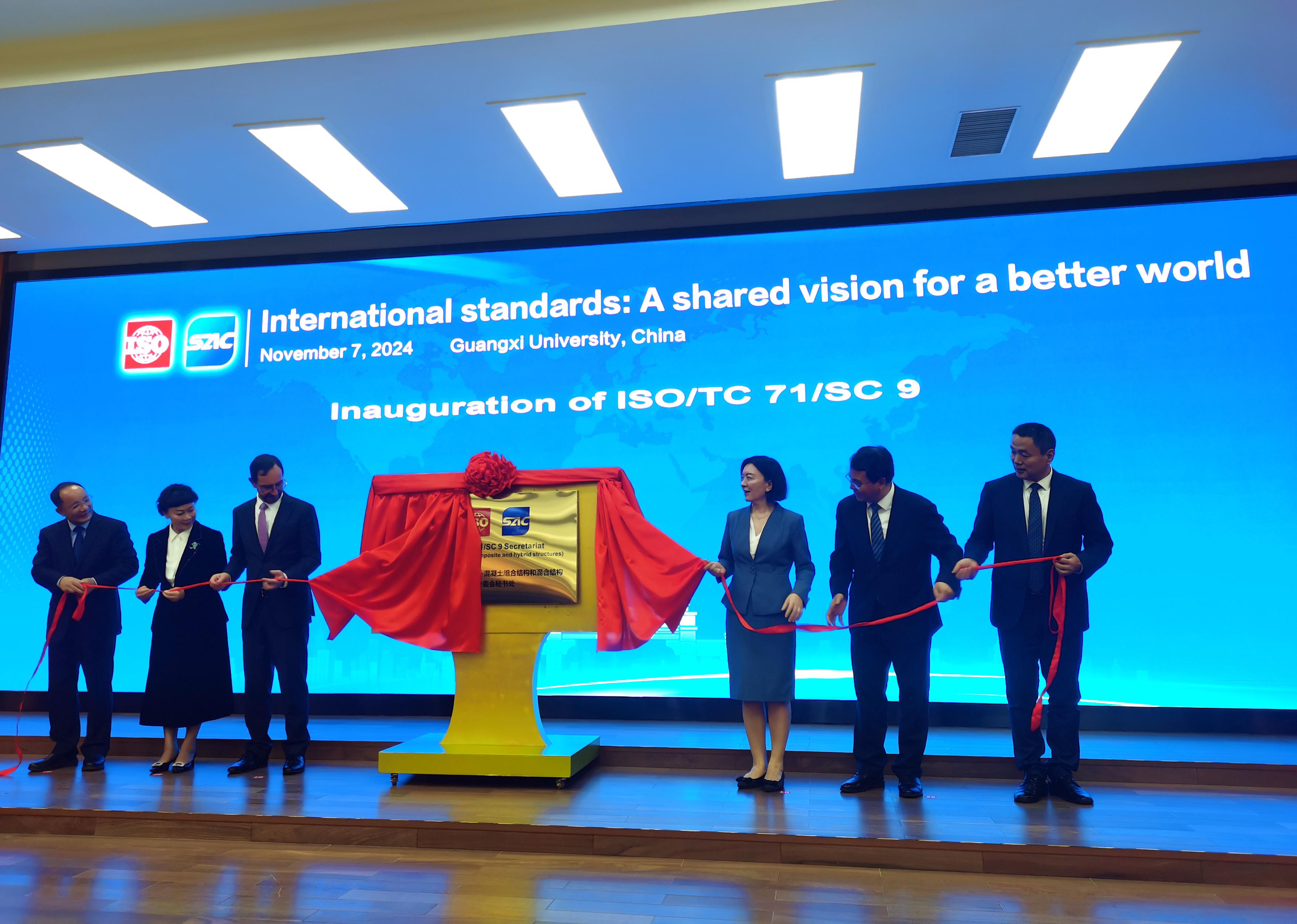11月6日—7日,国际标准化组织(ISO)秘书长塞尔吉奥·穆希卡到广西调研国际标准化工作,并出席由广西市场监管局、广西大学联合主办的“美好世界的共同愿景”国际标准化主题活动,一起为ISO钢-混凝土组合结构和混合结构分委会秘书处揭牌。