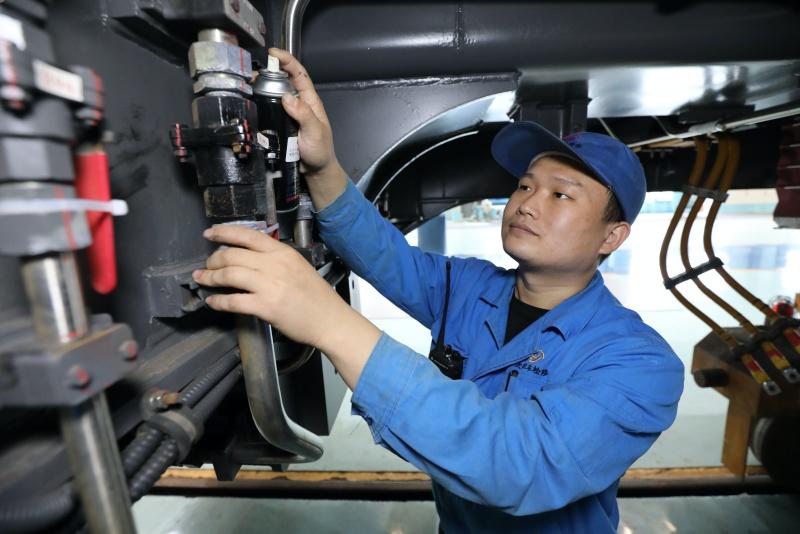 在铁路运输冲刺年度目标的关键时期,全国“技术能手”、中国铁路武汉局集团有限公司武汉大功率机车检修段质检员黄忆严格把控机车质量,细心检修机车防火、防脱、防弓网、制动系统、直供电装置,致力于为铁路运输安全畅通提供优质可靠的牵引动力。