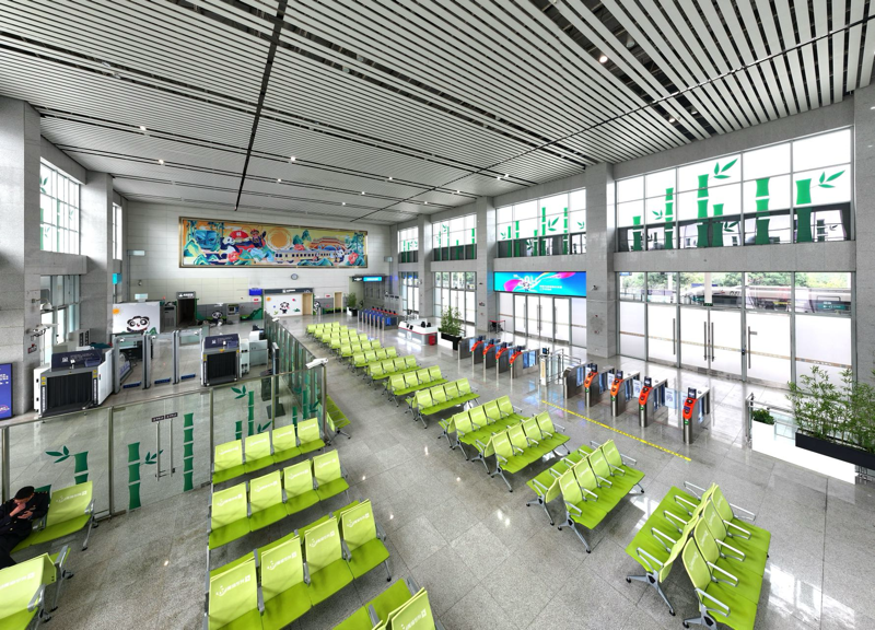 据了解,安靖站的整体设计突出了成都“熊猫之都”的地域文化,将为游客提供独具特色的候车体验。从设计成“熊猫专列”车厢的车站外观到站内基础设施、服务设备、旅游氛围的装饰,都有着可爱的熊猫头像、香槟金饰面和竹叶丝带等大量熊猫元素。此外,站前广场处还设置了熊猫立体雕塑打卡点,让游客在第一时间感受到成都的文化魅力。