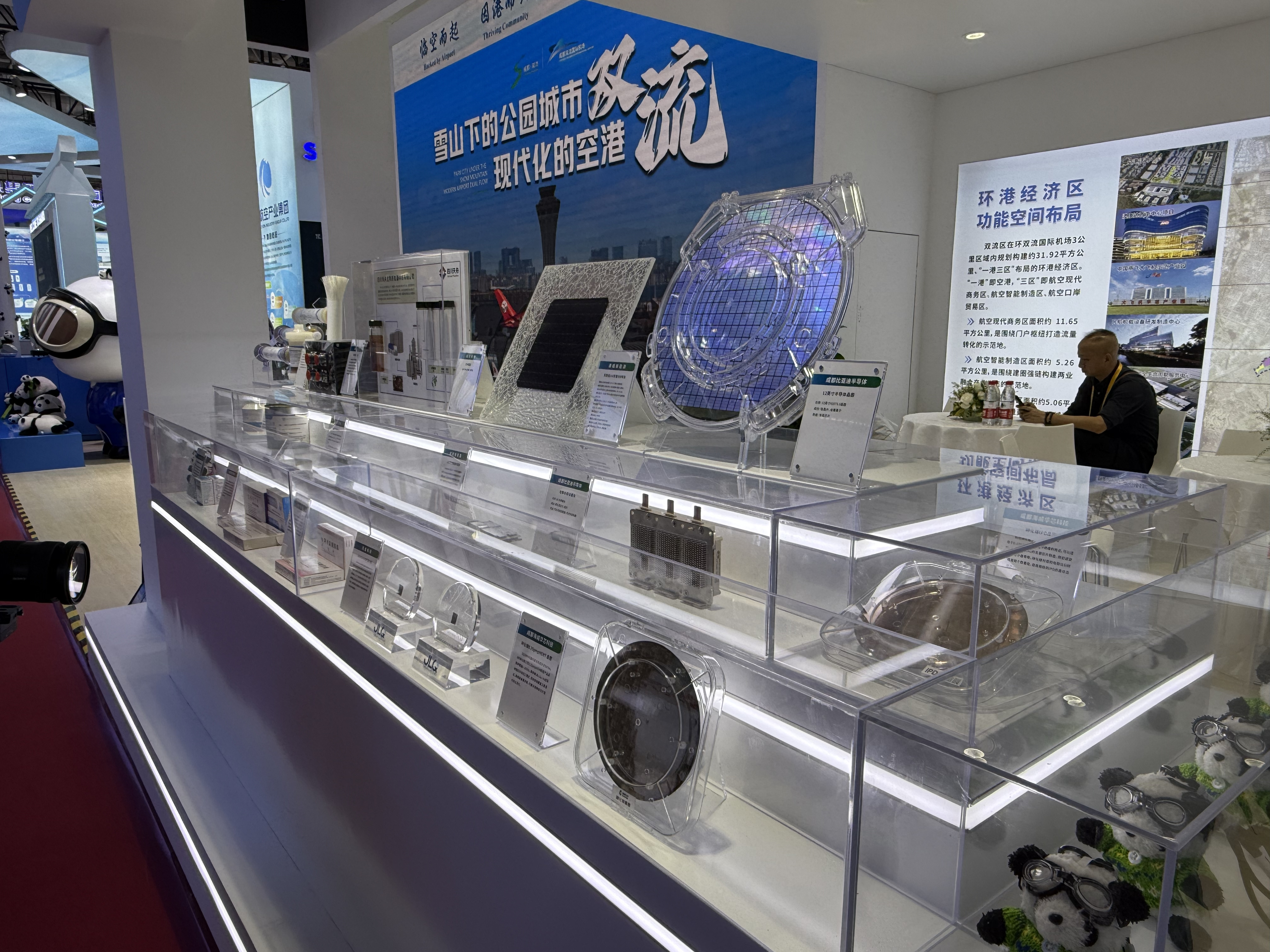 在大会现场的双流展区,不少参会嘉宾被熊猫、太阳神鸟、飞机等特色元素所吸引。据了解,双流展区是现场唯一由“机场和区政府”政企携手打造的展区,共有可持续航空燃油、单晶涡轮叶片、超轻发动机等23个重要航空航天特色展品。