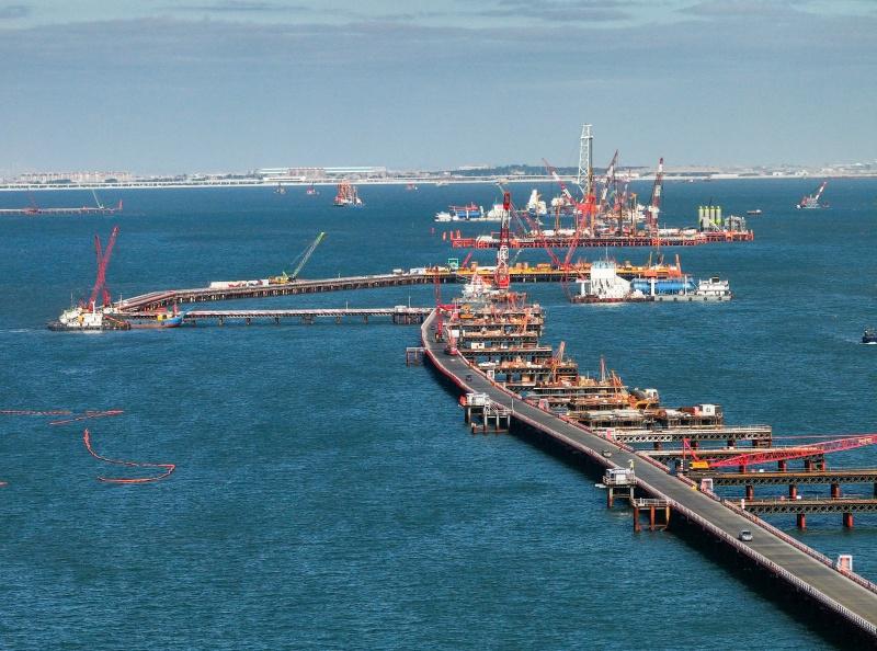 目前,西锚碇两个总重近4万吨的钢壳沉井正在泉州船厂拼装,将在年底运抵现场沉放。
