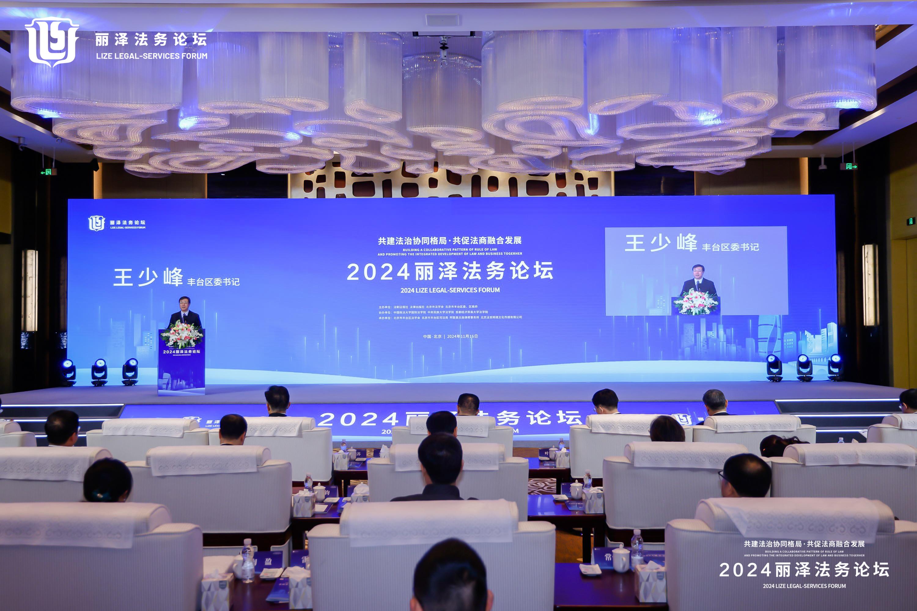 11月16日,2024丽泽法务论坛在北京丰台区举办。此次论坛以“共建法治协同格局 共促法商融合发展”为主题,由北京市法学会、北京市丰台区委区政府、法制日报社、法律出版社主办。