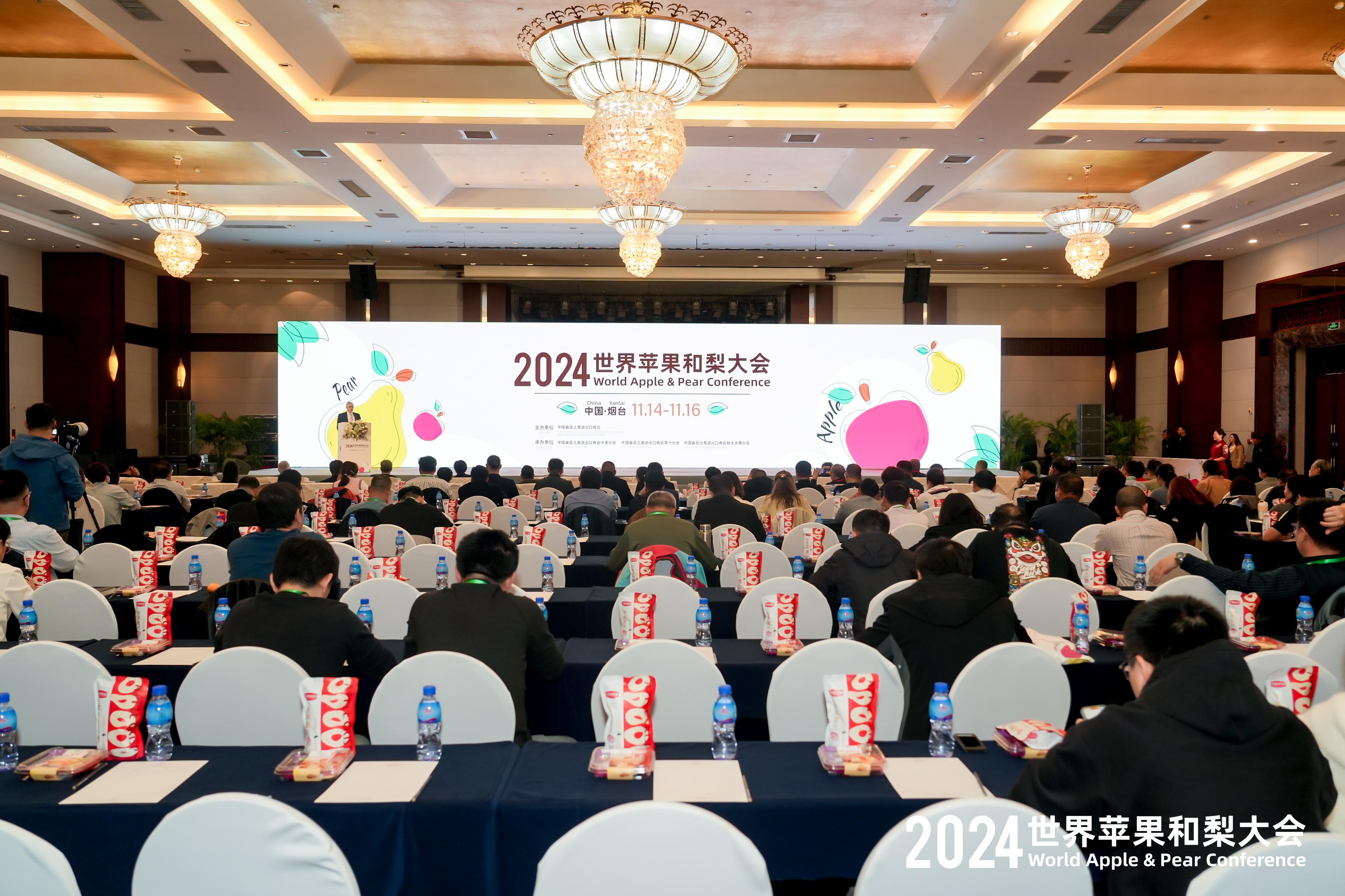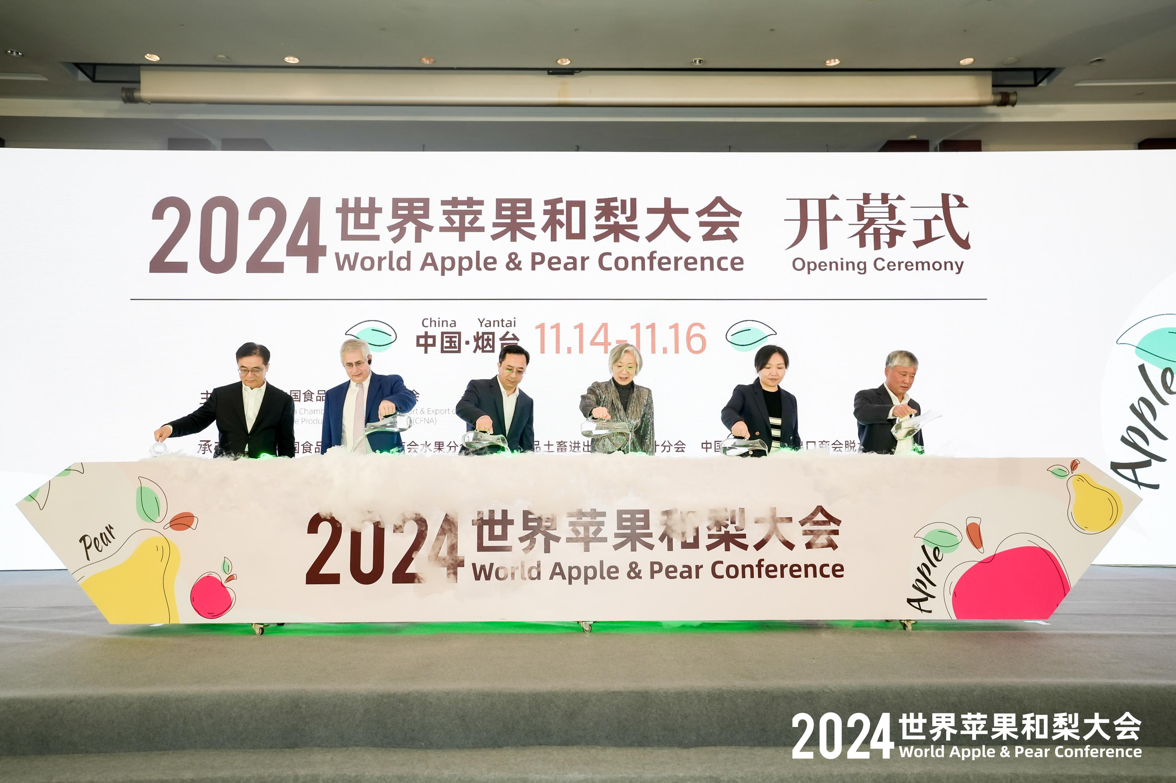 11月15日,由中国食品土畜进出口商会主办的2024世界苹果和梨大会在山东省烟台市举办。中国食品土畜进出口商会副会长于露,烟台市委常委、副市长沈健,商务部外贸司农产品处一级调研员刘希若,山东省商务厅二级巡视员蔡玉祥,青岛海关二级总监陈长法,陕西省果业中心副主任杨建伟,世界苹果和梨协会秘书长Philippe Binard等参加大会开幕式。