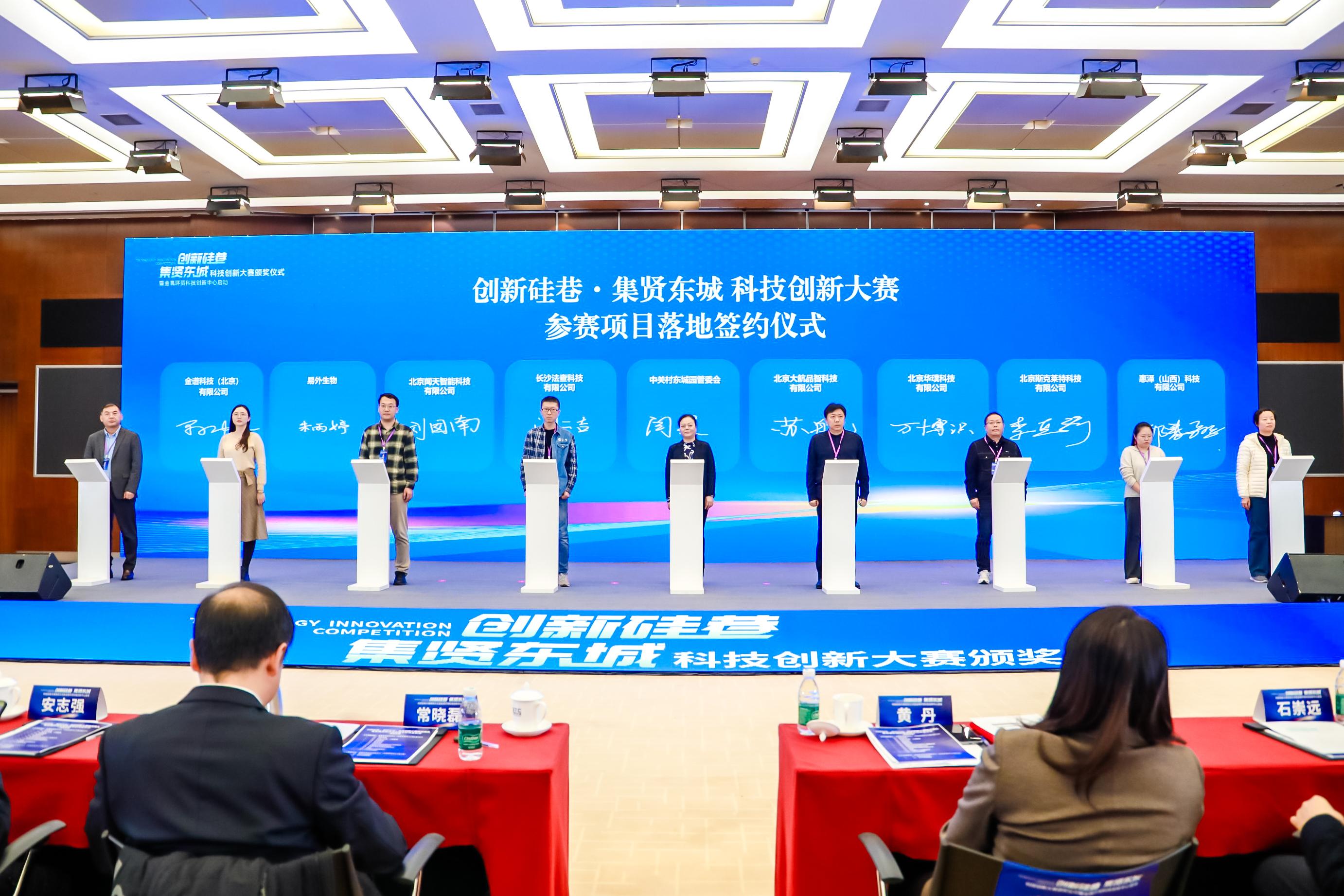 据介绍,大赛经过近三个月的两轮路演评审,从人工智能与新一代数字经济、文化科技融合与新消费、生物医药与数字医疗新业态、集成电路与物联网、碳中和与能源科技5个赛道评选出64个优秀项目,其中16个参赛项目现场签约落地东城区,未来将进一步开展成果转化,助力东城区“硅巷”建设。