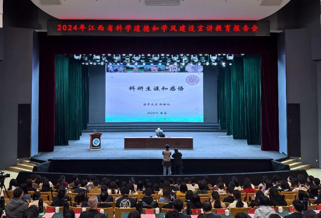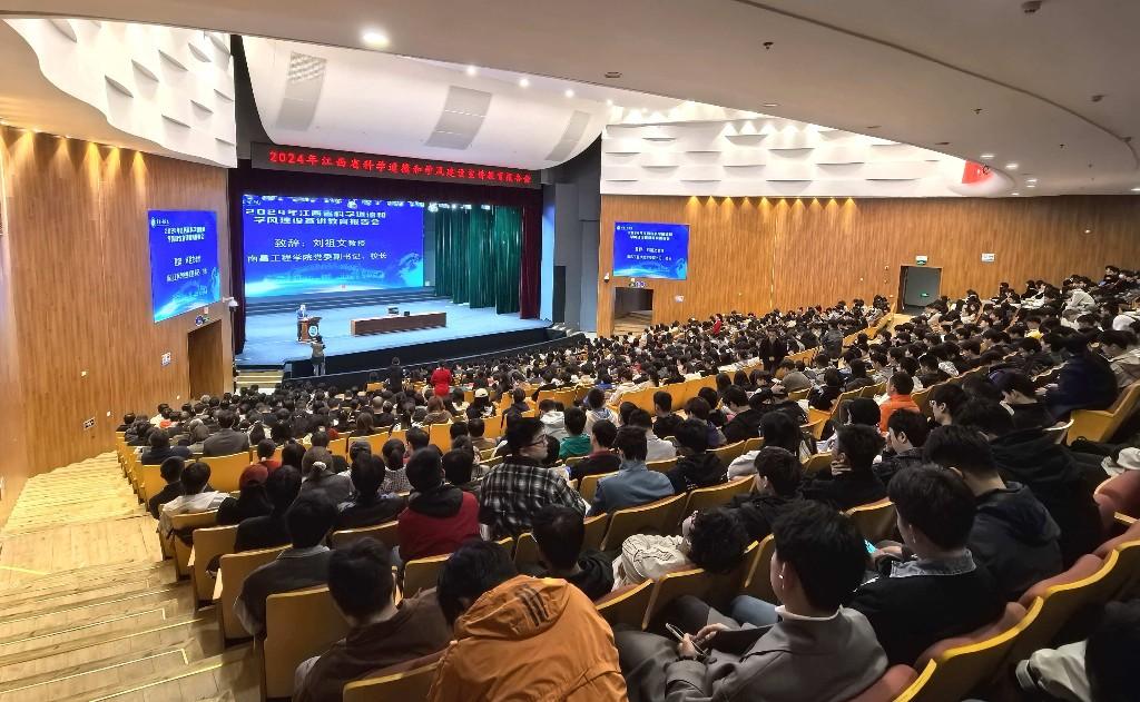 11月18日,以“铸科学之魂 扬学风之帆”为主题的2024年江西省科学道德和学风建设宣讲教育报告会在南昌工程学院瑶湖校区瑶湖艺术中心举行。