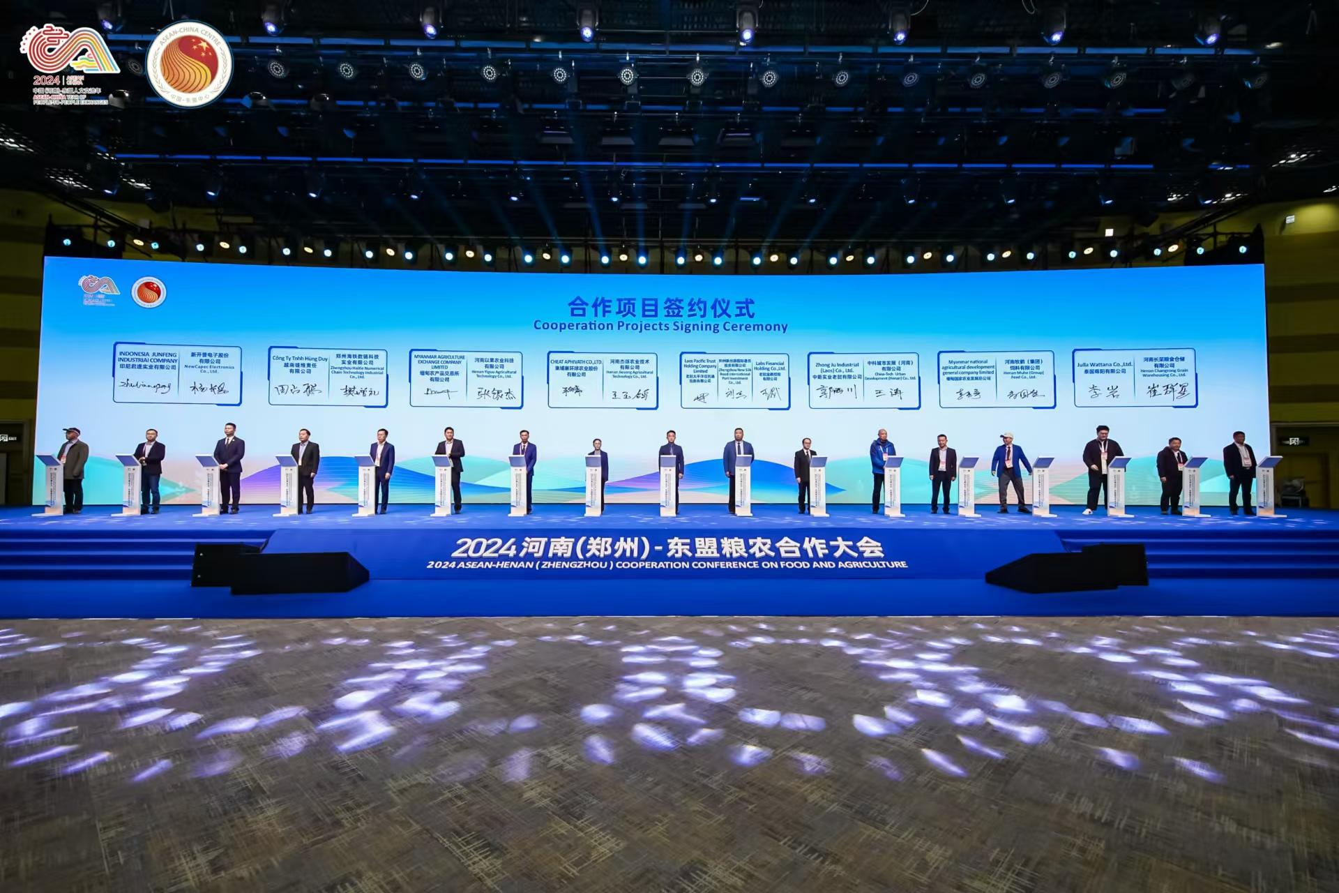 作为中国第一大贸易伙伴,近年来,东盟与中国农产品进出口规模持续扩大。河南是全国重要的食品加工业大省,国内市场上1/3的方便面、3/5的汤圆、7/10的水饺产自河南。会上,郑州农业发展集团有限公司与泰国馆集团有限公司等16对合作企业进行现场签约。