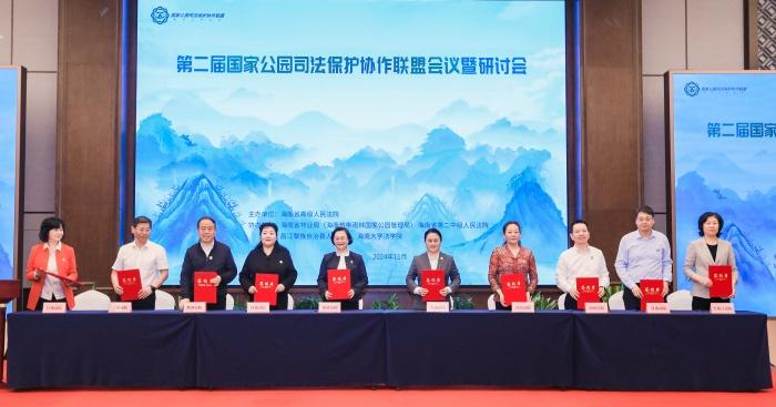 11月21日,在国家公园司法保护协作联盟成立一周年之际,第二届国家公园司法保护协作联盟会议暨研讨会在海南省昌江黎族自治县举行。会上,10家国家公园司法保护协作联盟高院共同签订了《国家公园司法保护协作联盟成员法院环境资源审判技术专家库互认合作协议》,旨在推动联盟法院相互认可入库专家资格,促进环境资源审判专业化发展。