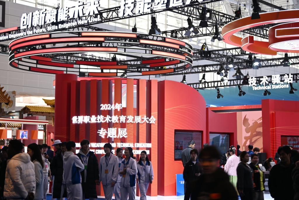 国家会展中心(天津)的职业教育专题展现场,一场场精湛技艺表演、一个个小型分享会吸引了中外嘉宾驻足。中外院校机构、产业链链主、行业龙头企业等70余家单位,在现场展示了职业教育的创新成果和实践经验。