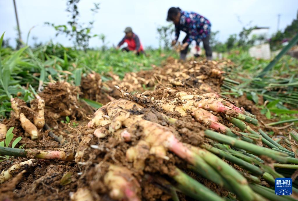 11月22日,在四川省南充市蓬安县利溪镇阙家坝村,村民在收获生姜。