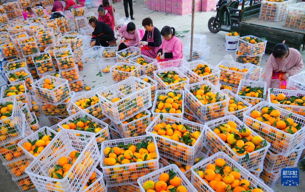 11月23日,在浙江省台州市三门县花桥镇蒲峰村,村民在包装柑橘。
