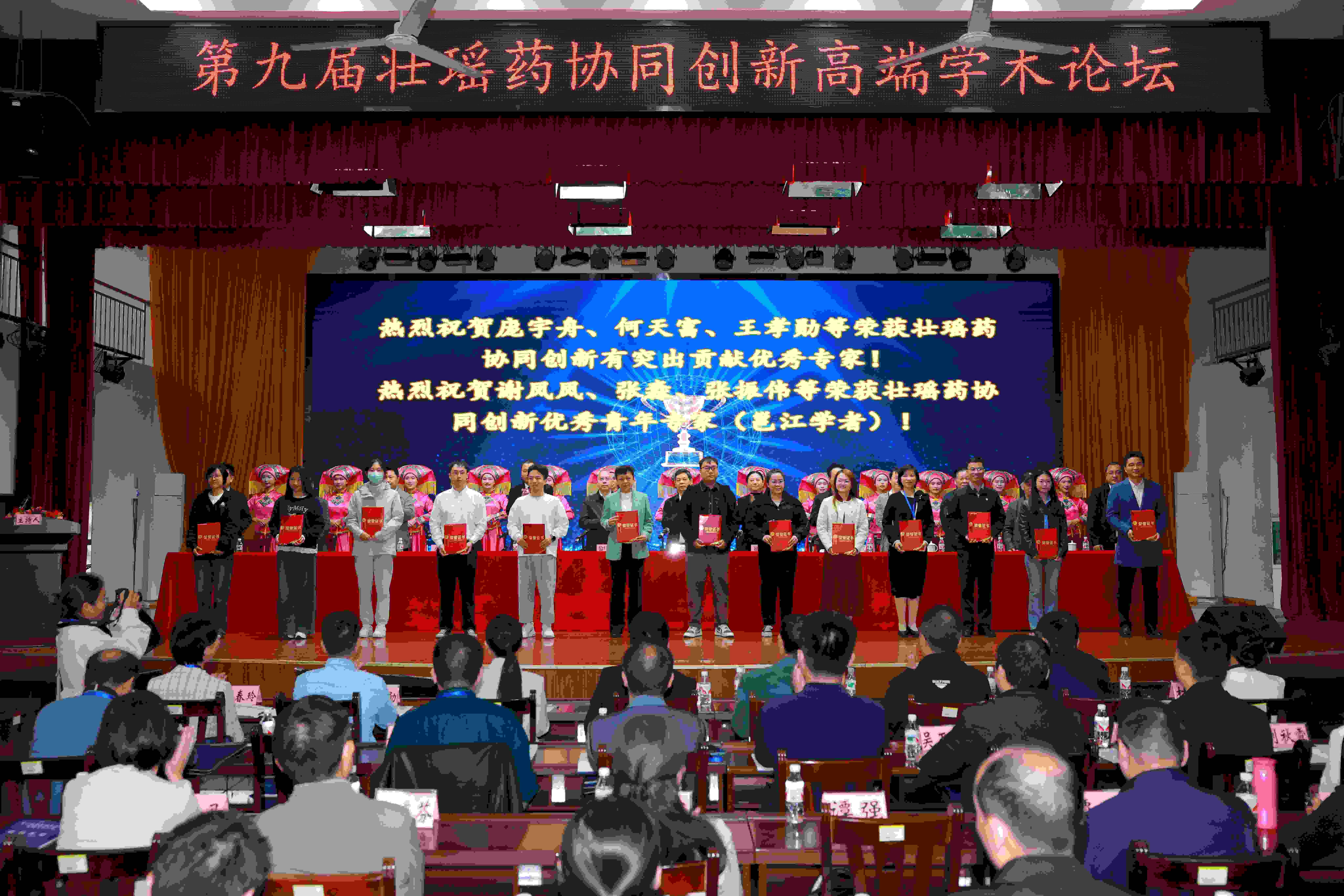 论坛颁发“第九届壮瑶药协同创新学术成果奖”55项,“中药光照鉴定学”“壮医香灸疗法技术规范及临床应用”等4项研究成果获特等奖;“5种瑶药材质量评价及产品开发关键技术研究”“中国壮药图鉴”等9项研究成果获一等奖;“鸡血藤药效物质基础及其质量评价研究”等15项研究成果获二等奖。论坛进行壮瑶药协同创新优秀人才表彰,庞宇舟、黄瑾明、黄汉儒、秦祖杰、卢汝梅、唐恢天、滕红丽、苏健、王孝勋、钟世安等28人荣获2024年度壮瑶药协同创新有突出贡献优秀专家。谢凤凤、张淼、张振伟、许立拔、邓延秋、姚绍嫦、廖彭莹、梁艺、樊兰兰、孟凤云10名学者荣获2024年度壮瑶药协同创新优秀青年专家(邕江学者)。论坛还举行了2024年10项广西中医药大学壮瑶药协同创新研究突出成果揭幕及祝贺仪式。
