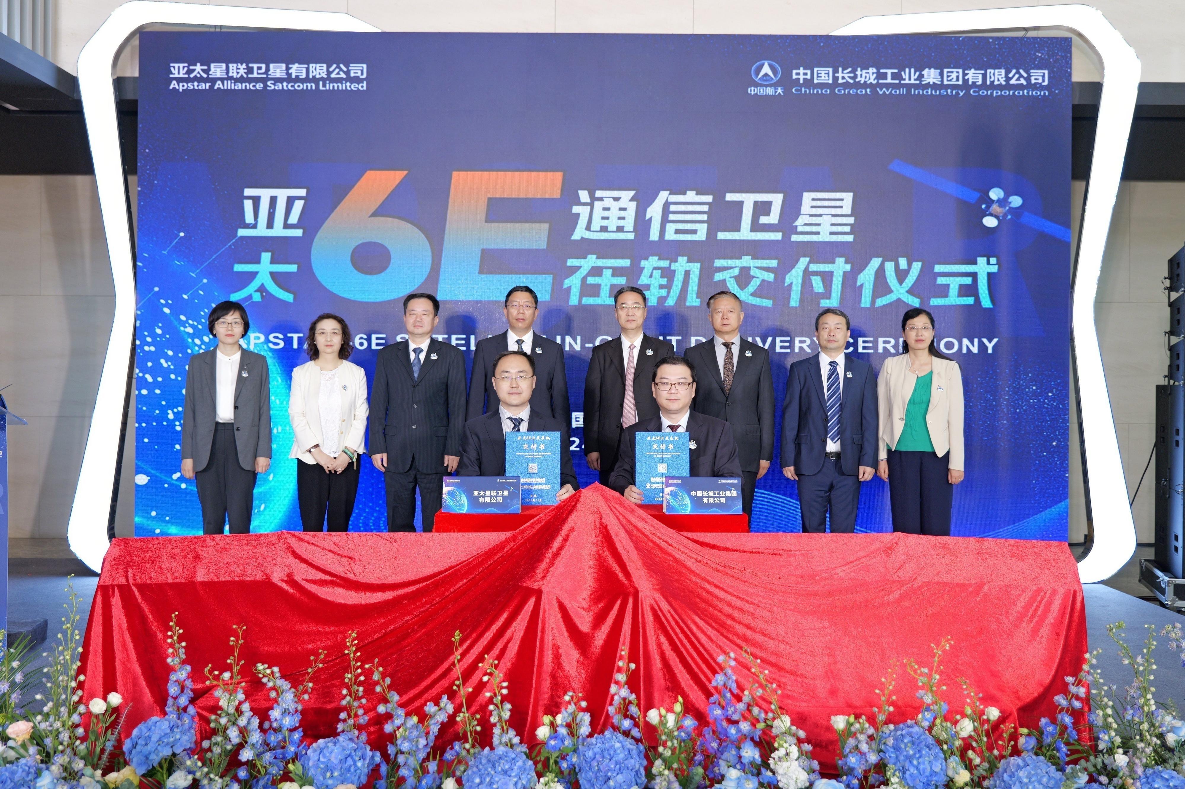 当日,中国长城工业集团有限公司和亚太星联卫星有限公司在香港举行该卫星在轨交付仪式,亚太6E卫星项目用户代表、分包单位及合作伙伴共同见证了这一时刻。
