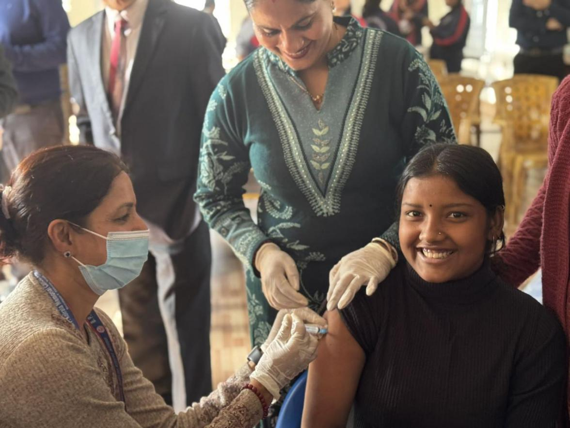 项目助力尼泊尔引入了中国宫颈癌筛查和诊断先进技术,目前B.P.柯伊拉腊纪念肿瘤医院已安装配备5台国产HPV快速检测(POCT)检测设备和1台电子阴道镜检查设备,并完成940名妇女筛查。项目组还对当地数十名医务人员开展了宫颈癌防治相关操作与技能培训,培训内容贯穿宫颈癌综合防控全链条、疫苗接种技巧及不良反应应对、宫颈癌筛查技能、检测设备操作技能等,进一步提升了尼方医务人员的专业技能。此外,项目建立了涵盖HPV疫苗接种、筛查、转诊、治疗和随访等关键环节的电子数据库,提高了宫颈癌综合防控的规范化与信息化水平。