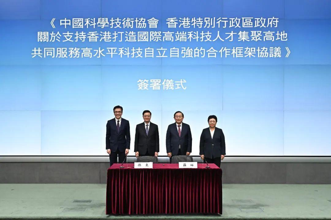 12月3日,在中国科协主席万钢和香港特别行政区行政长官李家超见证下,中国科协港澳台办公室主任罗晖与香港特区政府创新科技及工业局局长孙东分别代表中国科协和香港特区政府签署合作框架协议。
