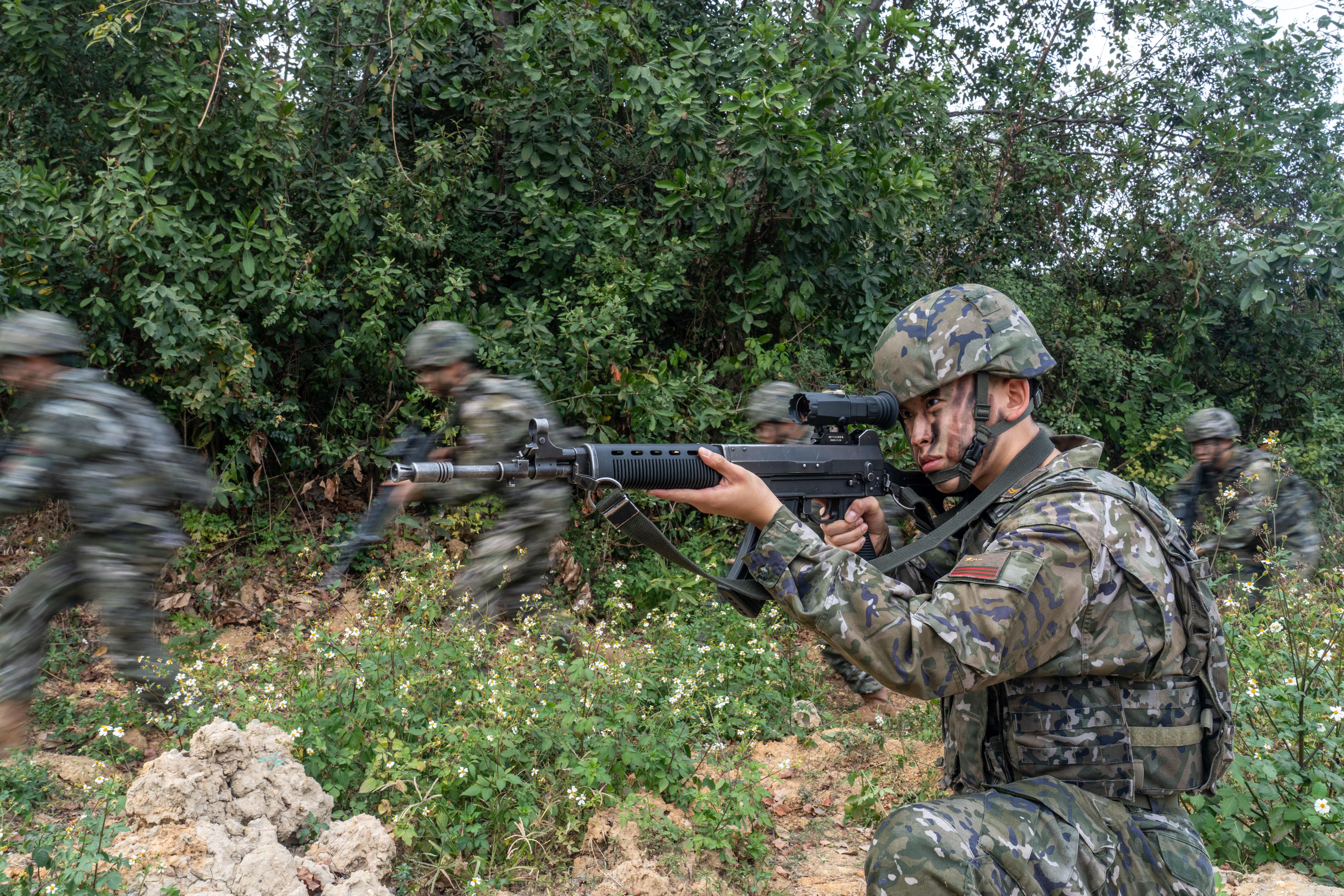 近日,武警广西总队南宁支队组织官兵挺进山林、丛地等陌生复杂地域开展捕歼战斗演练,围绕班组战术、情报侦察和山地追逃等内容展开强训,进一步提升官兵战术素养,锤炼战斗本领,为遂行多样化任务奠定坚实的能力基础。