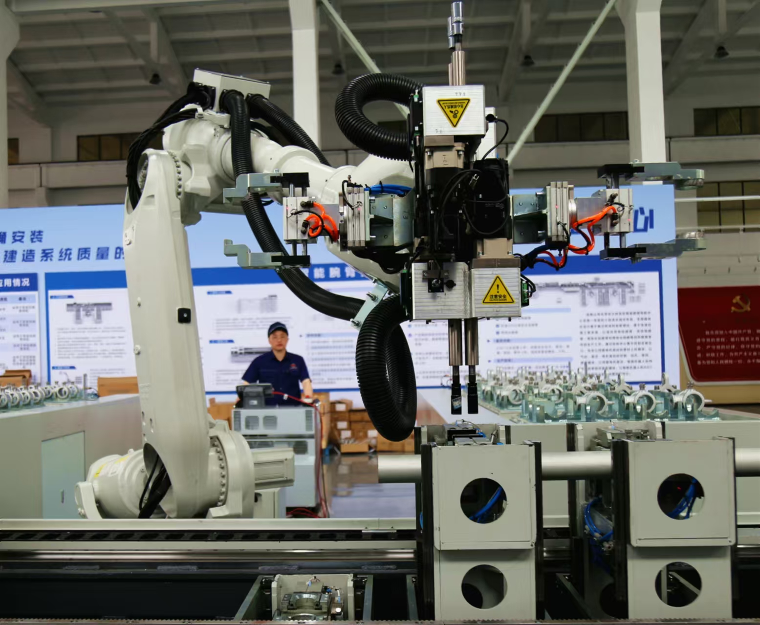 据悉,中铁建电气化局集团轨道交通器材有限公司智能总装基地研发的智能腕臂预配、吊弦预配平台均已实现“现场测量—需求计算—产品预配”全流程对接,成功在生产端完成了精密制造,并已发往项目现场进行应用。