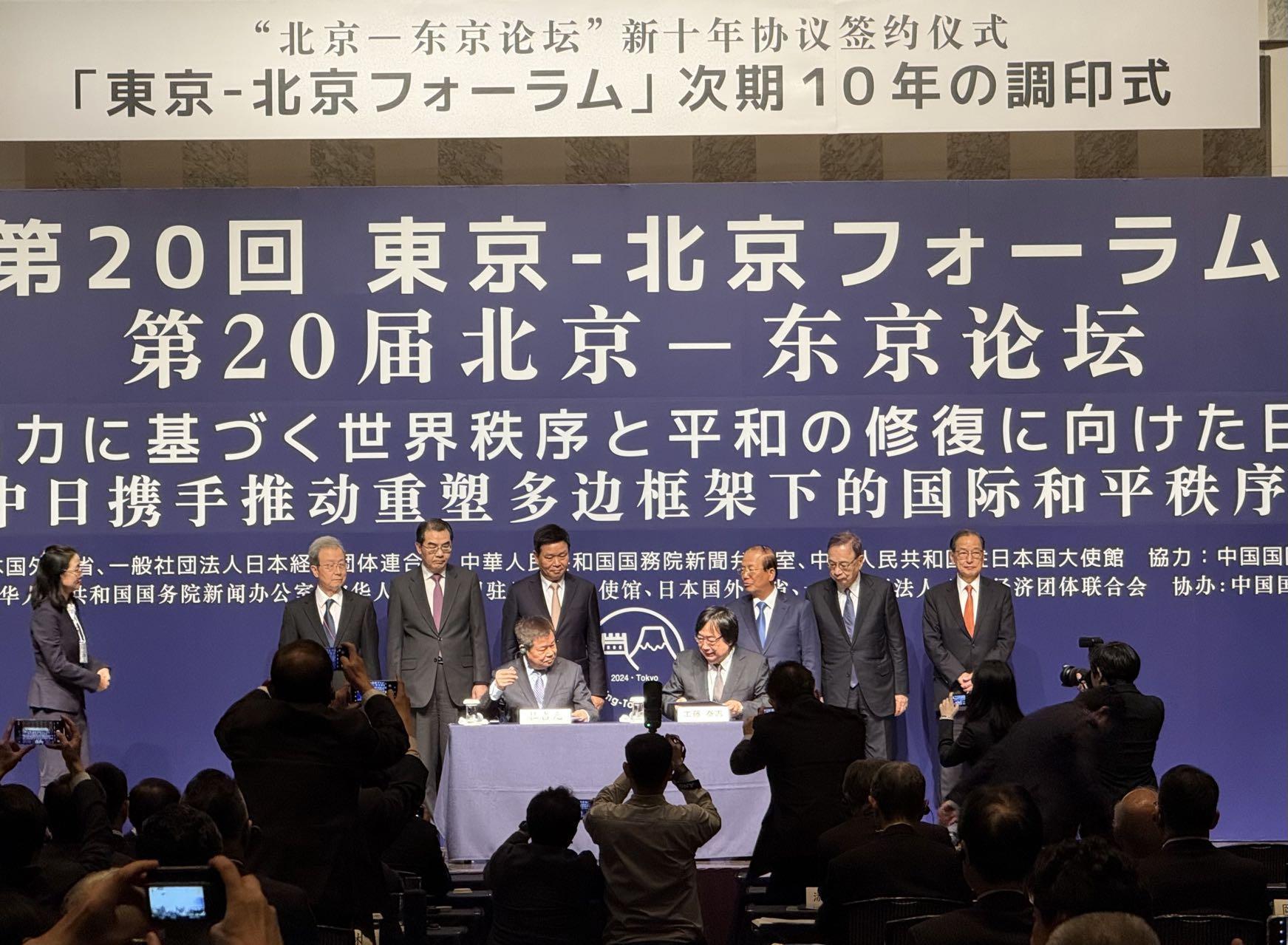开幕式后,论坛主办方中国外文局和日本言论NPO举行了论坛新十年(2025—2034)合作框架协议签约仪式。双方高度评价论坛过去20年为增进互信、凝聚共识、推动中日关系健康稳定发展所作的努力与贡献,宣告将继续共同推动论坛在未来十年取得新的更大成效,为中日友好合作续写新的华章,为地区与世界和平繁荣发展贡献新的力量。