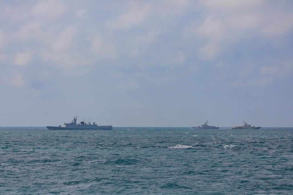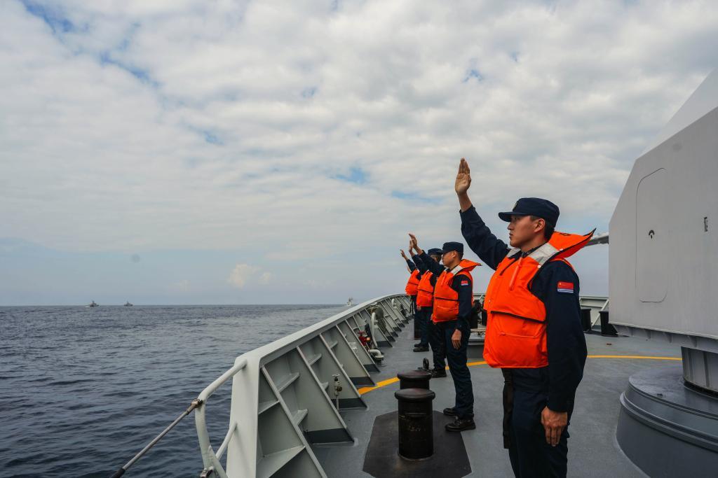 4日,双方舰艇编队抵达北部湾巡逻线终点,双方舰艇组成双纵队齐头并进,指挥员通过甚高频互相致意,官兵在甲板上分区列队挥手告别,联合巡逻圆满结束。