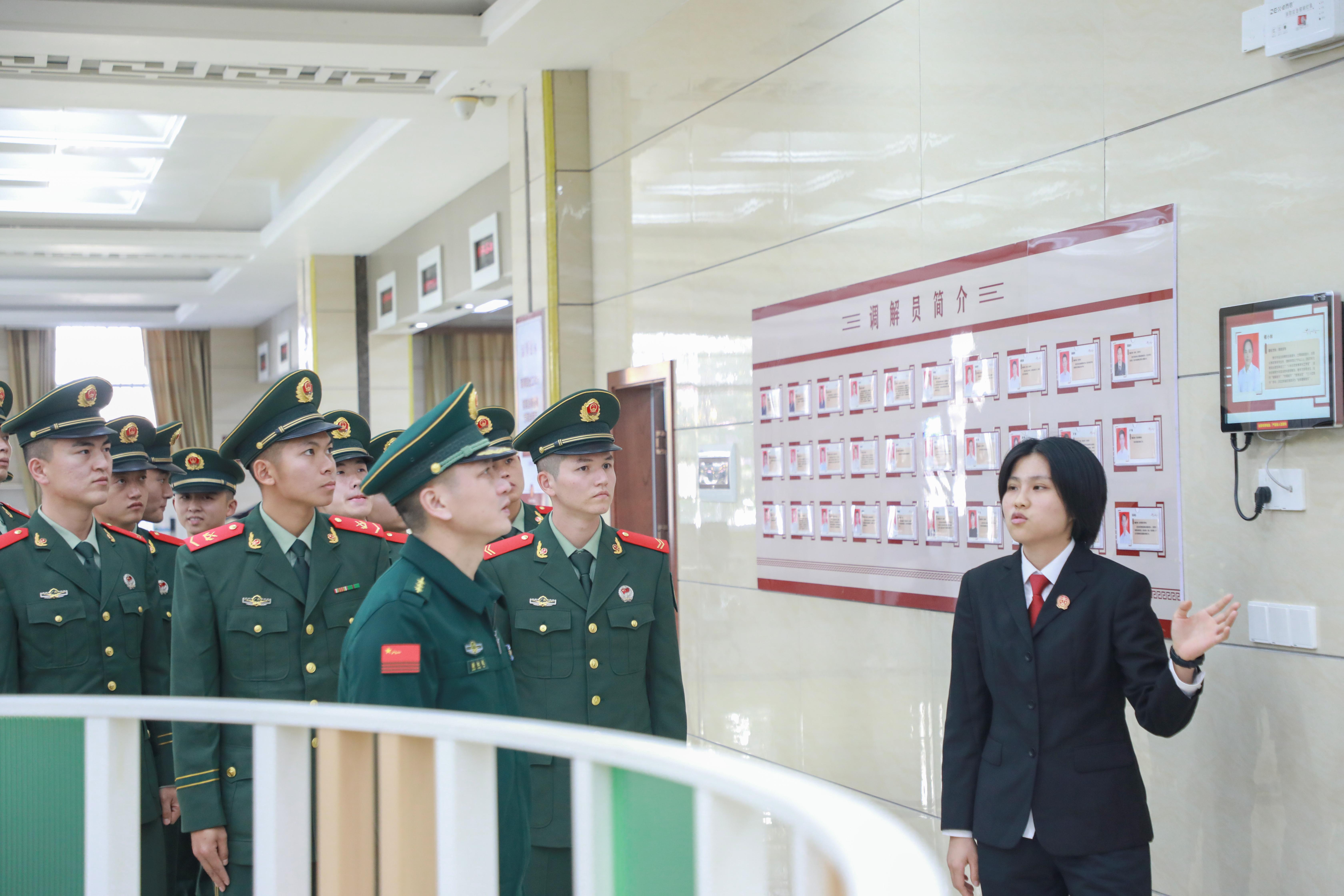 活动中,该支队还组织官兵走进驻地法院进行交流学习,参观法院审判庭、调解室、警示教育展厅等。战士尹子序表示:“法律是保障我们合法权益的有力武器,切不可罔顾法纪,逾越红线,在权力与私欲的泥沼中沦陷。”