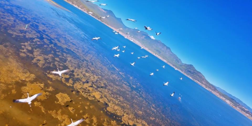 “与鹤齐飞”是什么体验?上百灰鹤在丽江拉市海翱翔