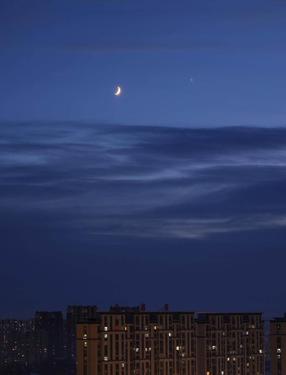 12月5日,金星伴月再现夜空。天文科普专家表示,相较上个月,本次金星伴月不仅地平高度更高,可观测时间也更长。