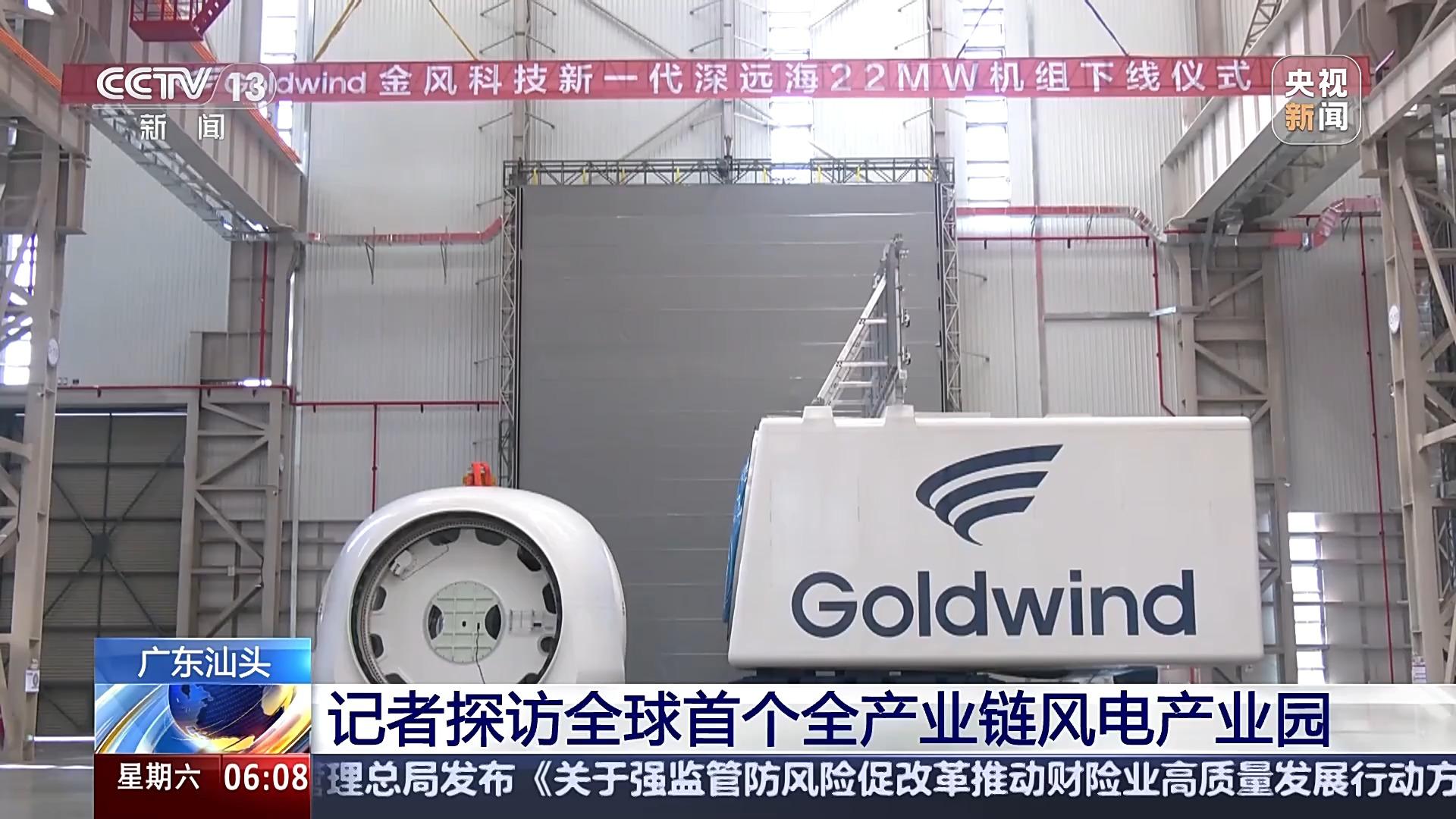 在总装车间,刚刚装配完成的风电主机和轮毂等关键配件正整装待发。在这里还有一台刚刚下线的用于深远海的22兆瓦级风电主机。目前我国已经投运的大部分风电主机的容量,都是在10兆瓦以下。这台新主机超过了它们一倍以上。