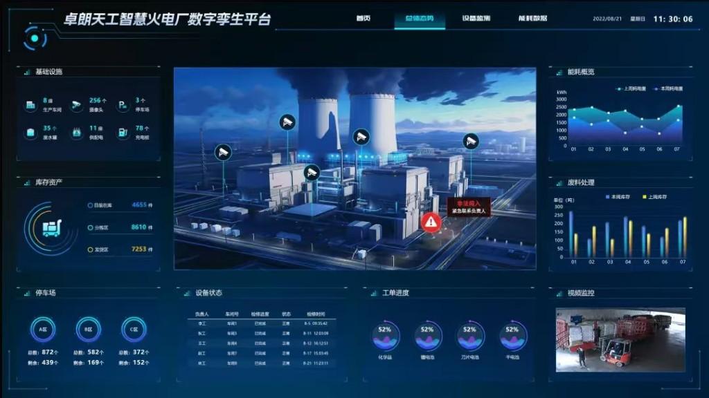 卓朗天工智慧火电厂解决方案赋能电厂数字底座。方案覆盖企业全层级、全业务、全过程的智慧管控,并利用三维可视化等技术手段提升管理水平,方案包括智慧安全、智慧设备、智慧运行等模块,精确感知生产数据、优化生产过程,从而科学地制订生产计划。