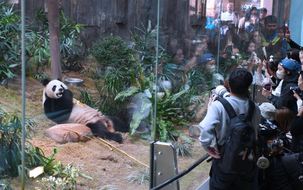香港的熊猫迷李小姐参观结束后站在场馆附近,用手机编辑视频准备上传到不同社交平台。“用影像记录大熊猫的生活,不仅是因为它们有治愈的能力,更可以让人们看到香港在大熊猫保育方面所做的工作,这也是一个了解香港、了解中国的窗口。”