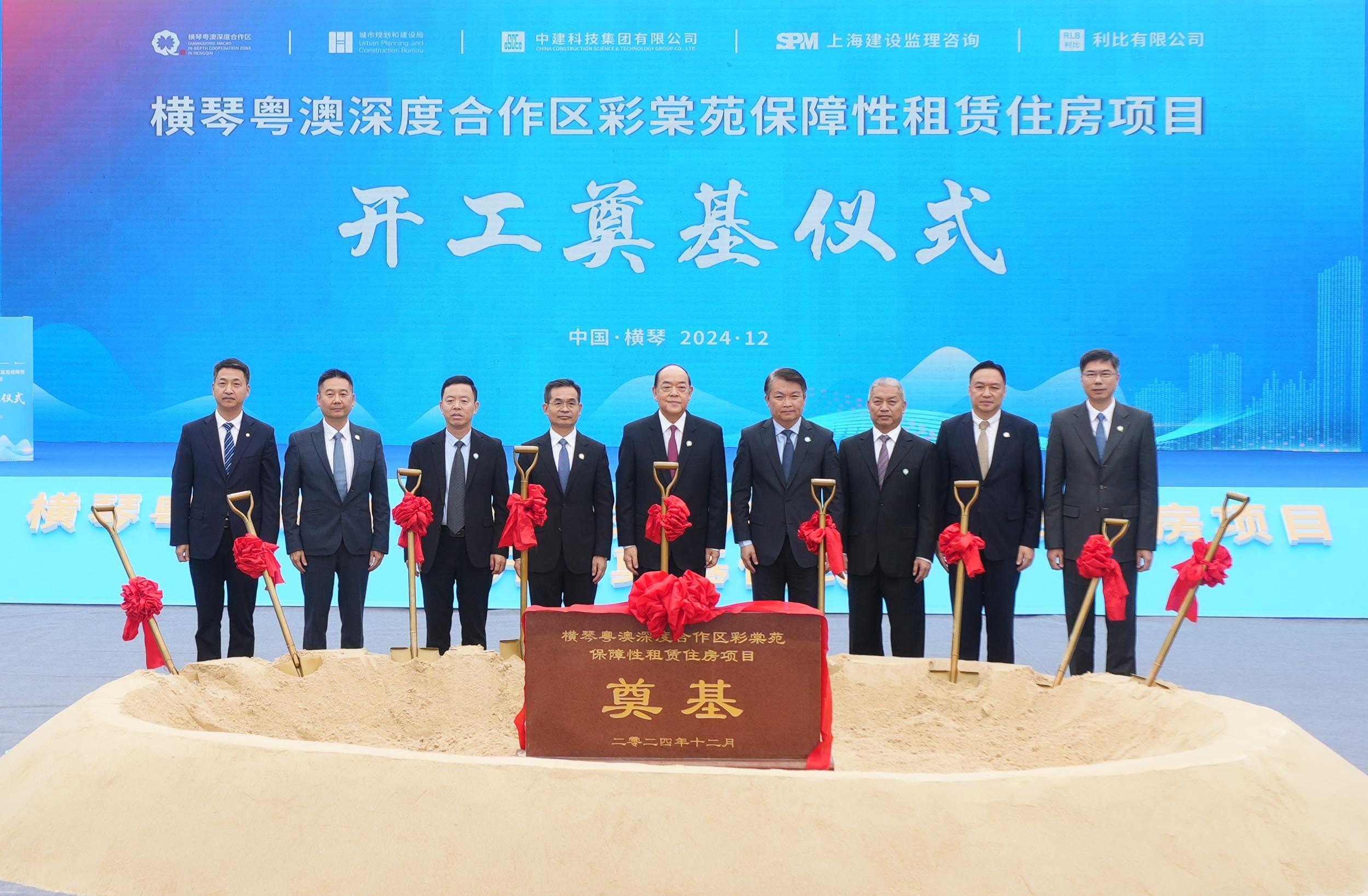 澳门特别行政区行政长官、横琴粤澳深度合作区管理委员会主任贺一诚出席开工仪式。来自澳门相关机构、合作区执委会机构、项目相关建设单位代表出席仪式。