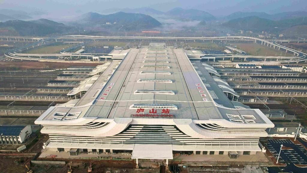 12月10日,随着最后一把旅客座椅安装完成,安九高铁全线最大车站、京九铁路重要交通枢纽——庐山站东站房全面亮相,东、西站房全面连通。