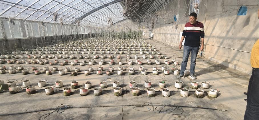 2020年冬天,基地选育多棵桃树、杏树、苹果树和海棠果树苗做试验,采取人工强迫休眠的办法将它们放入冷库,根据不同果树的需冷量确定出库时间,对其破眠,促使果树萌芽开花。果树反季节栽培试验连续三年获得成功,此技术在全国领先。
