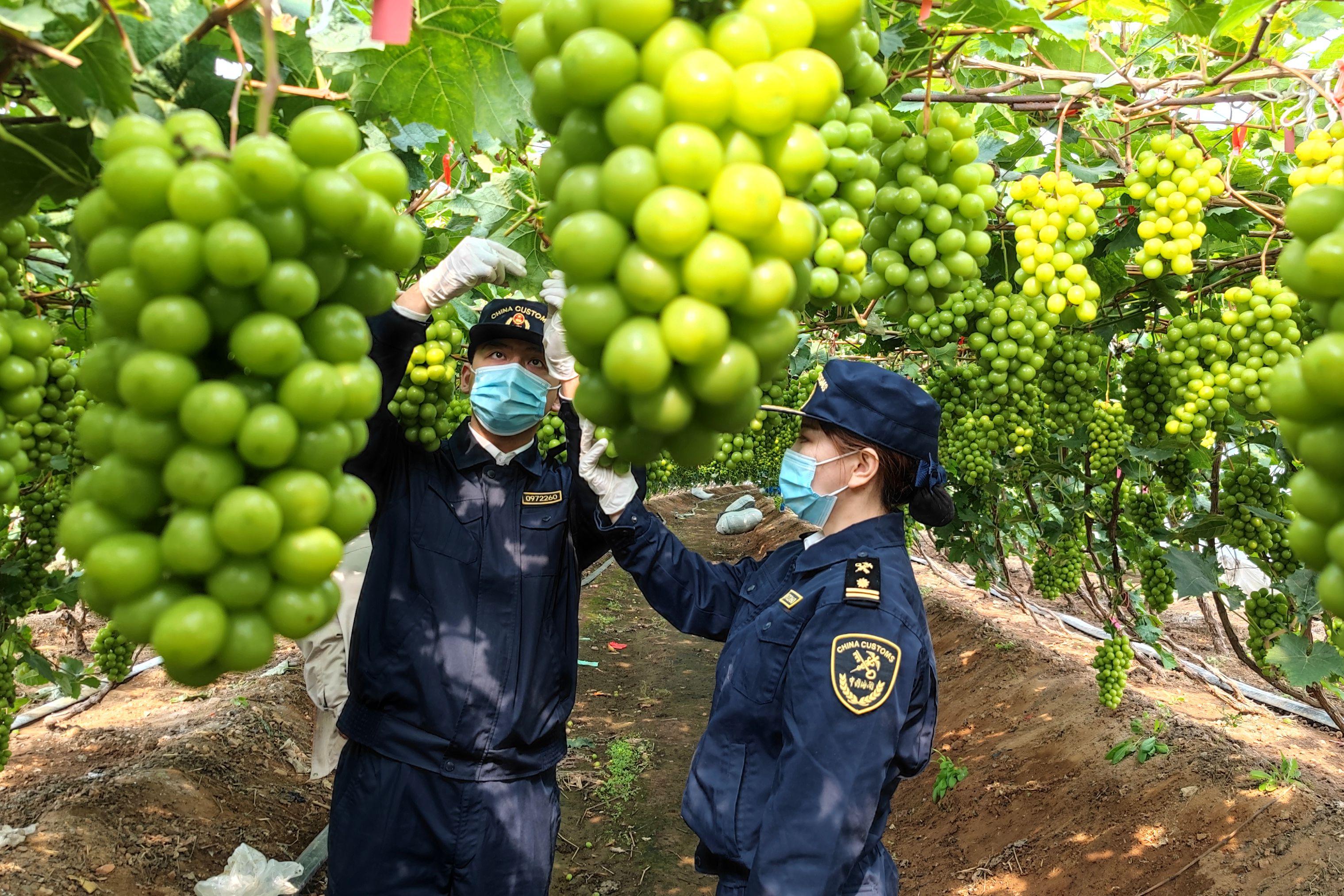 近日,在大连长兴岛海关监管下,大连继懋生态果业有限公司申报出口的3500余箱“阳光玫瑰”葡萄顺利完成检验检疫、查验等监管工作,即将通过海运冷藏集装箱方式出口至澳大利亚。这是我国首次通过海运途径向澳大利亚出口葡萄。