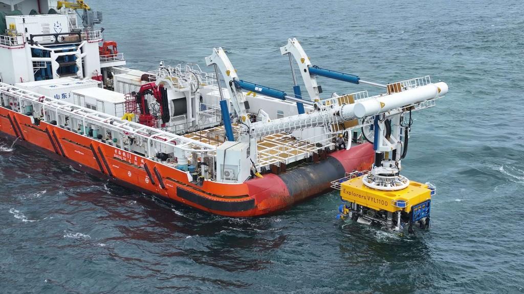 12月12日,记者从南方电网广东电网公司获悉,由该公司牵头研制的我国首台作业时速公里级水下敷缆机器人近日完成下水测试。