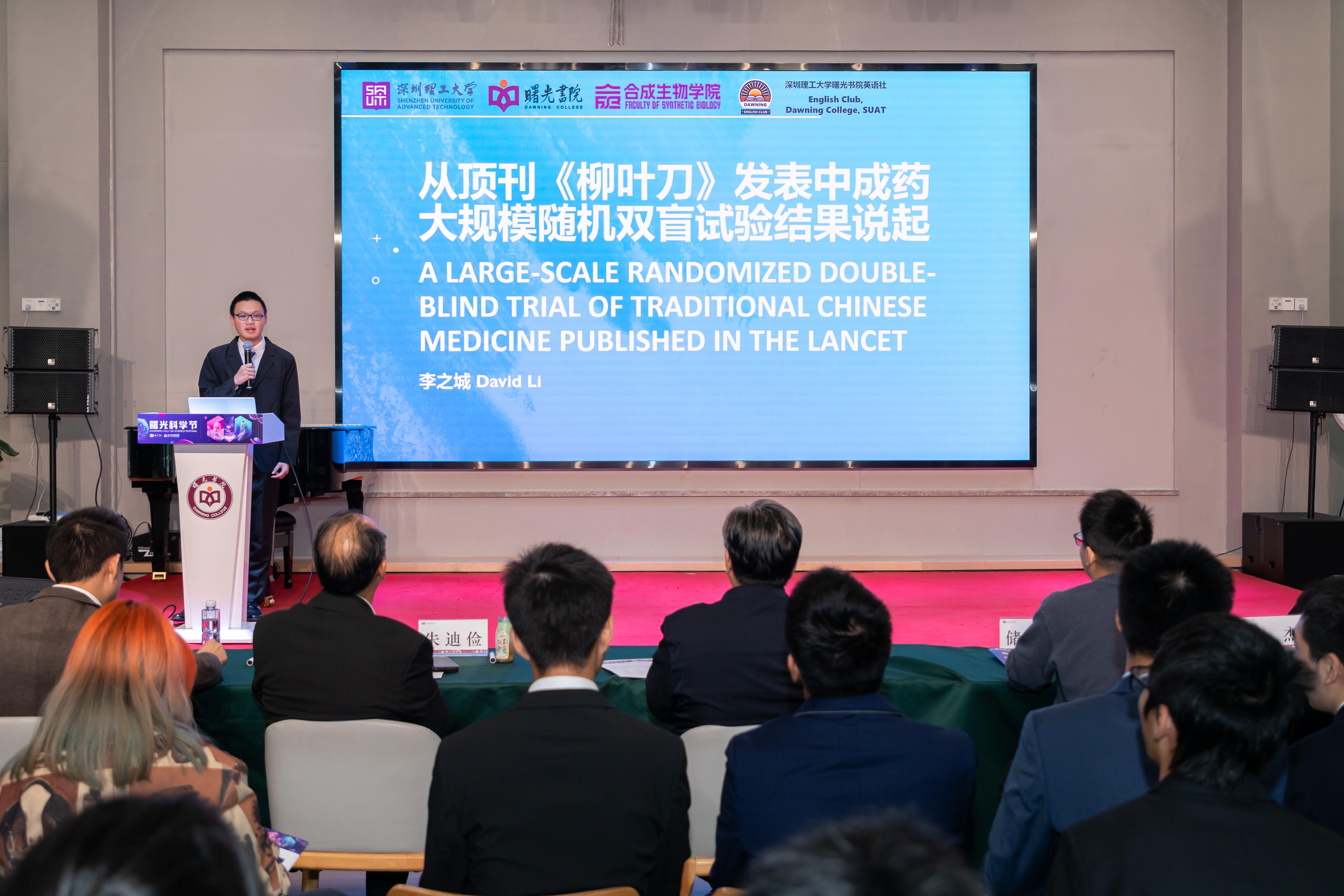 12月11日,深圳理工大学举办首届以本科生为主体的“学术活动”——曙光科学节,26名大一学生身着正装依次走上演讲台作学术报告,内容涵盖生命科学、计算机科学、材料科学以及计算数学、天文学等。