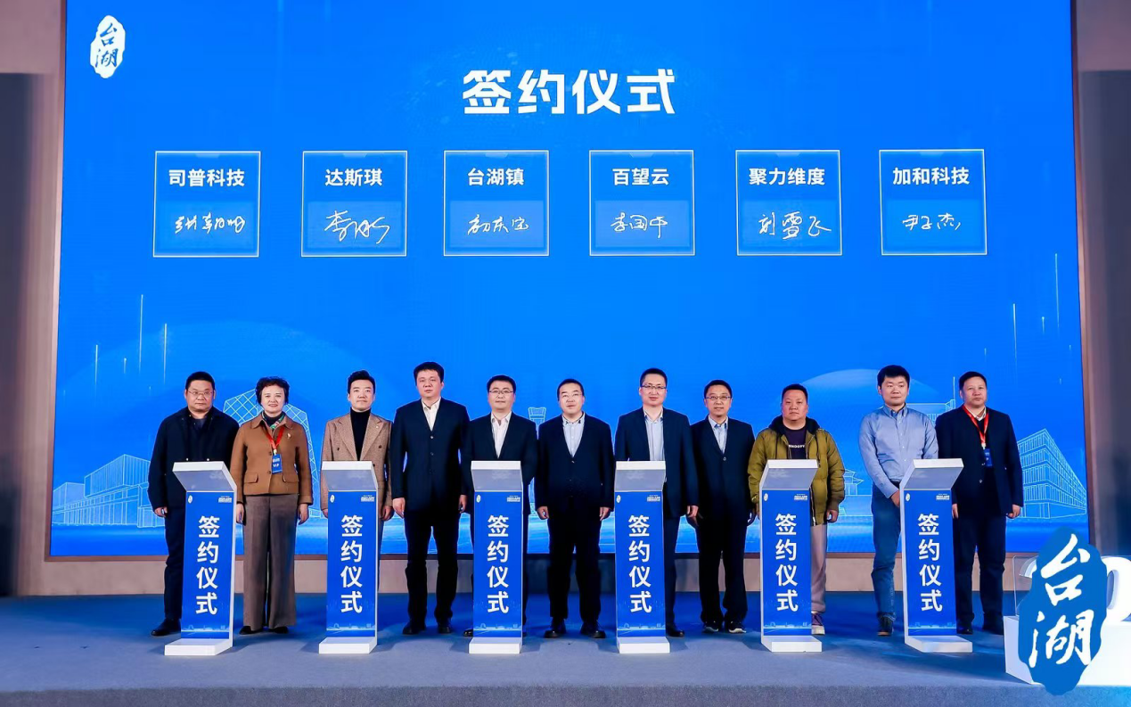 活动中,百望云、达斯琪、加和科技、聚力维度、司普科技与台湖镇人民政府签约。