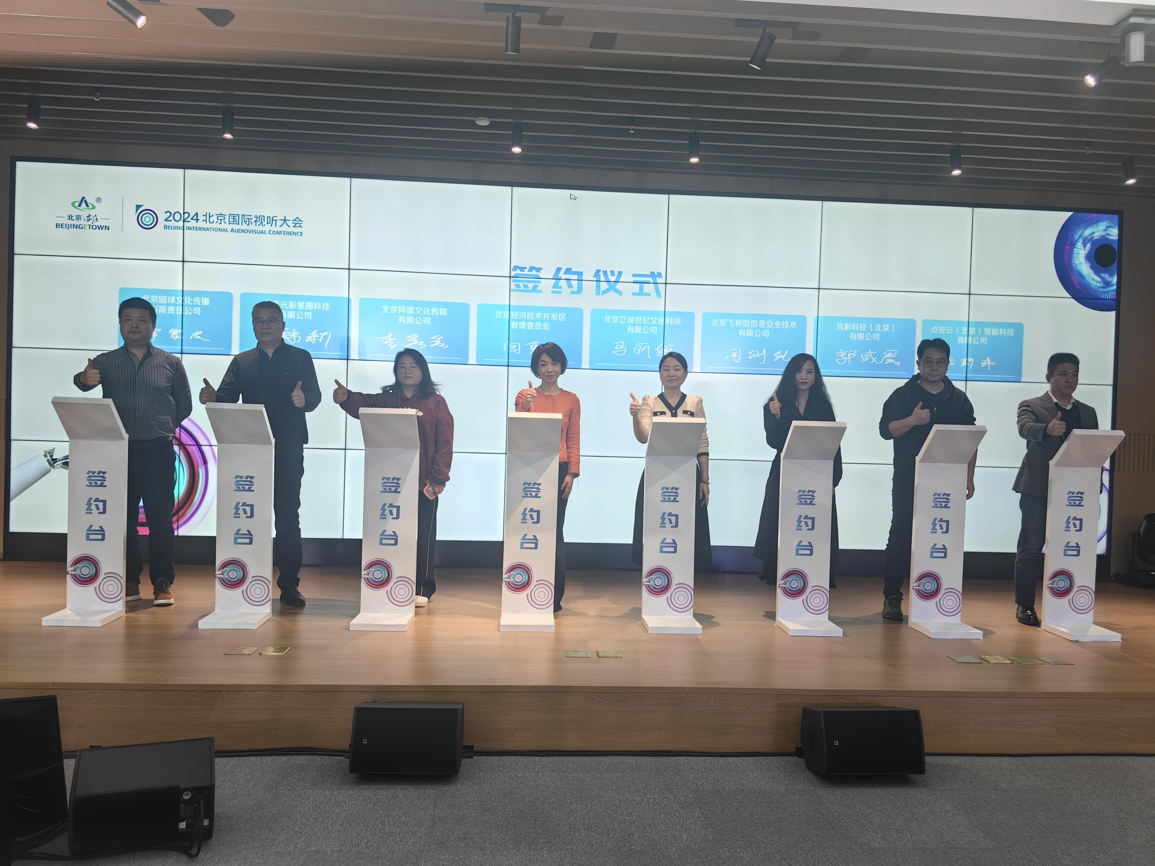 当天,北京经开区管委会与点控云(北京)智能科技有限公司、北京飞利信信息安全技术有限公司、北京同源文化传媒有限公司、北京立诚世纪文化科技有限公司、北京光影星图科技有限公司、互影科技(北京)有限公司、北京圆球文化传播有限责任公司7家视听领域领军企业和潜力新星集中签约,签约双方将在技术攻关、资源共享、成果转化等方面展开深度合作,为经开区视听产业发展持续注入新动力。
