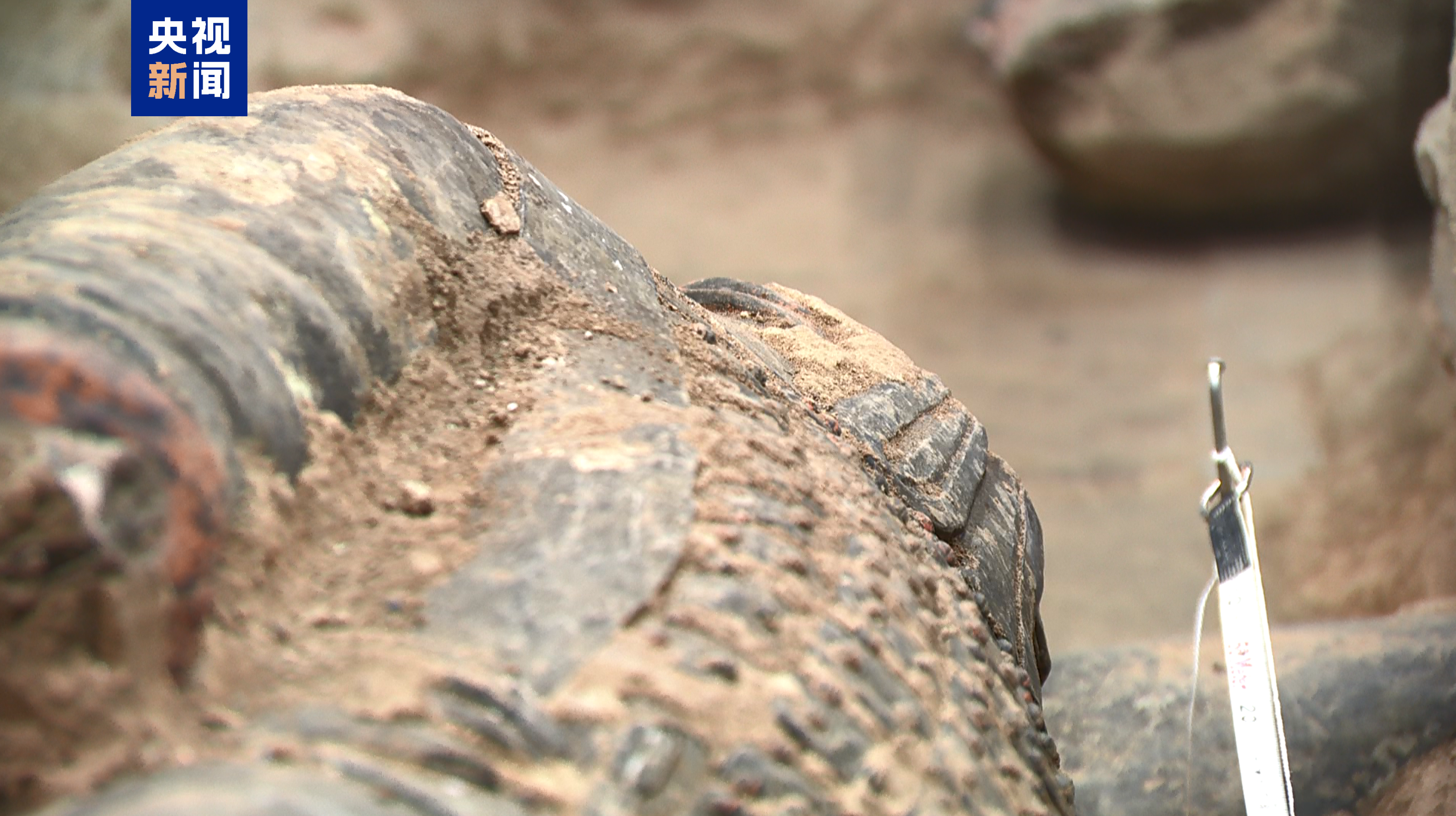 此前,专家初步判断其为“车左俑”。随着今天上午考古人员把这尊俑的脚部清理出来,发现其双脚是直立的,排除了它是“车左”或者“车右”的可能。再根据它前胸的冠带,结合头部的发型,判断这其实是一尊军吏俑。