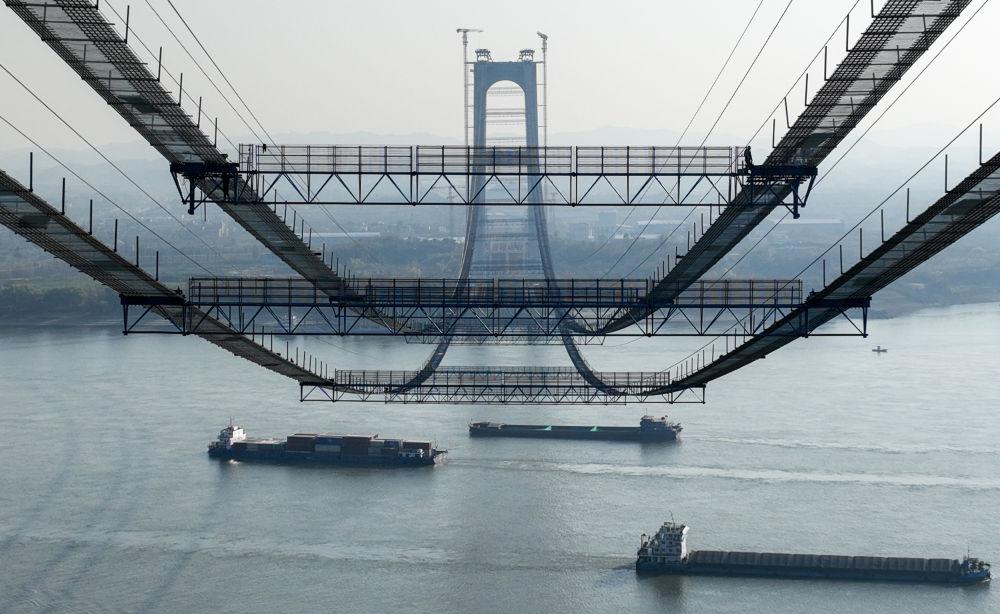 燕矶长江大桥连接黄冈市黄州区和鄂州市燕矶镇,由湖北交投集团投资,中铁大桥局集团承建,采用双塔单跨设计并一跨过江,主跨1860米,上层设计为高速公路,下层为城市快速路。