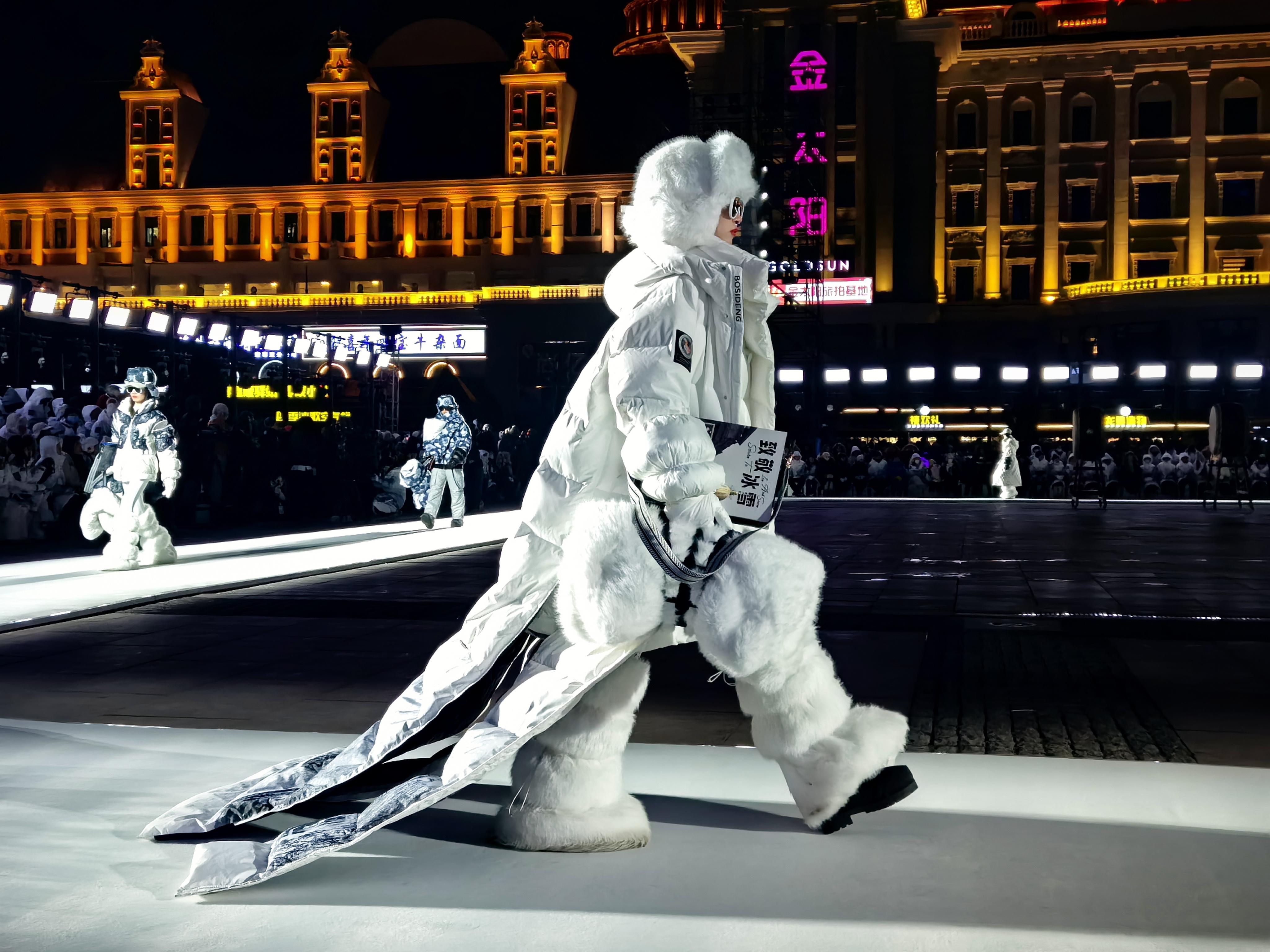 发布活动上,波司登股份有限公司带来的冬季秀款及新品首次亮相,令人惊艳。设计师从哈尔滨人文与历史汲取灵感,打造出“城市系列”“民族系列”“套娃系列”等羽绒服饰,在秀场上讲述跨越时空的城市故事,向世界展示民族品牌与国潮城市的文化自信与独特韵味。